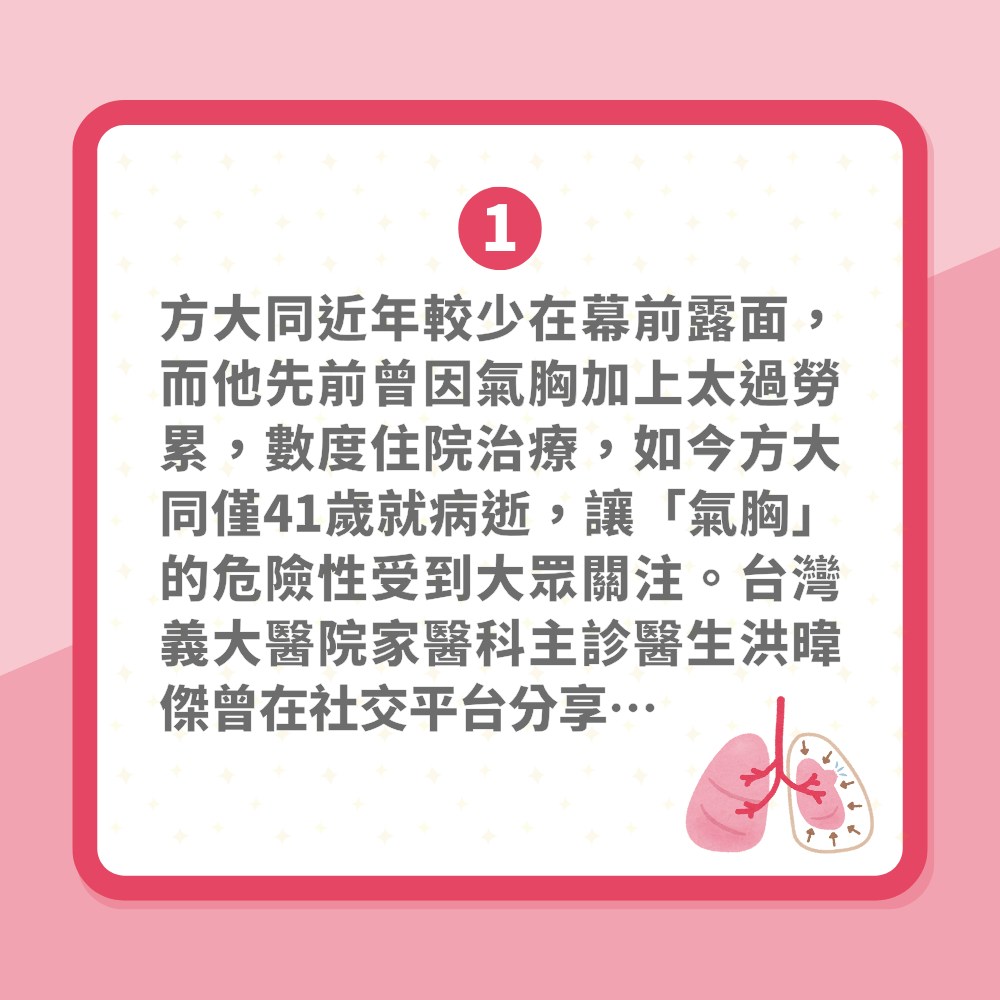 方大同去世|氣胸是什麼?醫生列5類人屬高危族群 高瘦男要注意(01製圖)