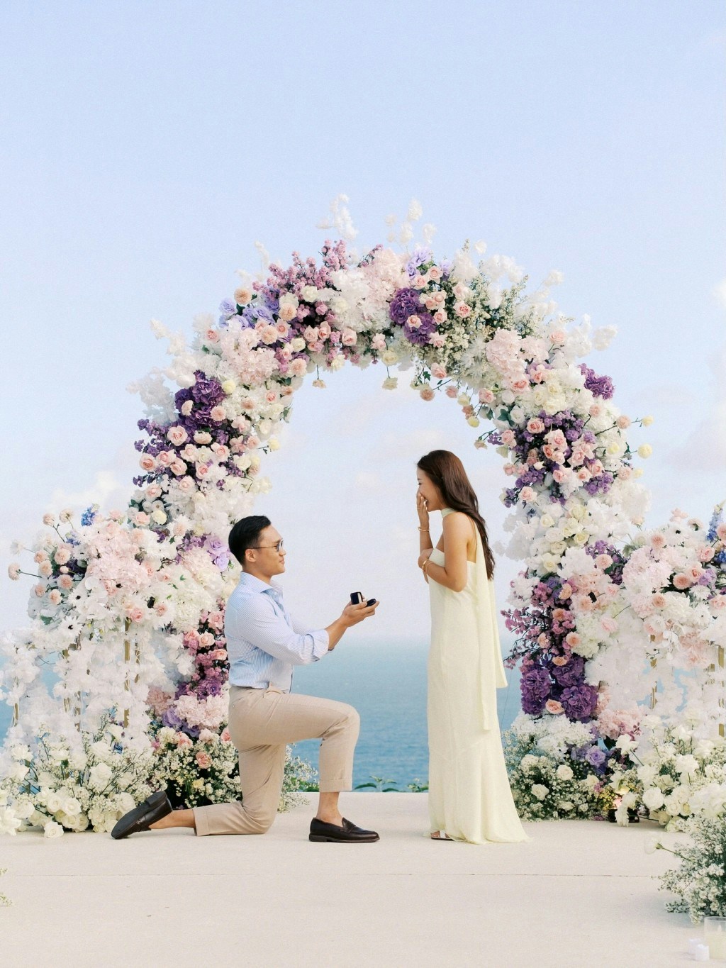 相中所見,求婚儀式十分隆重,選址海邊,還有藍天白雲美景,兩邊路旁放滿粉紅和白色的鮮花,朱喜望的男友在圓拱型的鮮花裝置前單膝跪地送上巨型鑽戒,朱嘉望難掩喜悅之情掩嘴而笑。她以英文留言:「過去兩周,我們私下享受訂婚的喜悅,真是太好了,但現在是時候和大家分享我們的喜悅了。作為夫妻我們走過這段旅程,我感到無比幸福和感激。」朱嘉望還說:「作為一個小女孩,我總是白天夢見我的求婚會是怎樣的,但我從來沒有想像過這個。我愛你 J,過去兩周的經歷簡直是夢幻般超現實。求婚完全超出了我的預期,我急不及待地想和你共度餘生。」