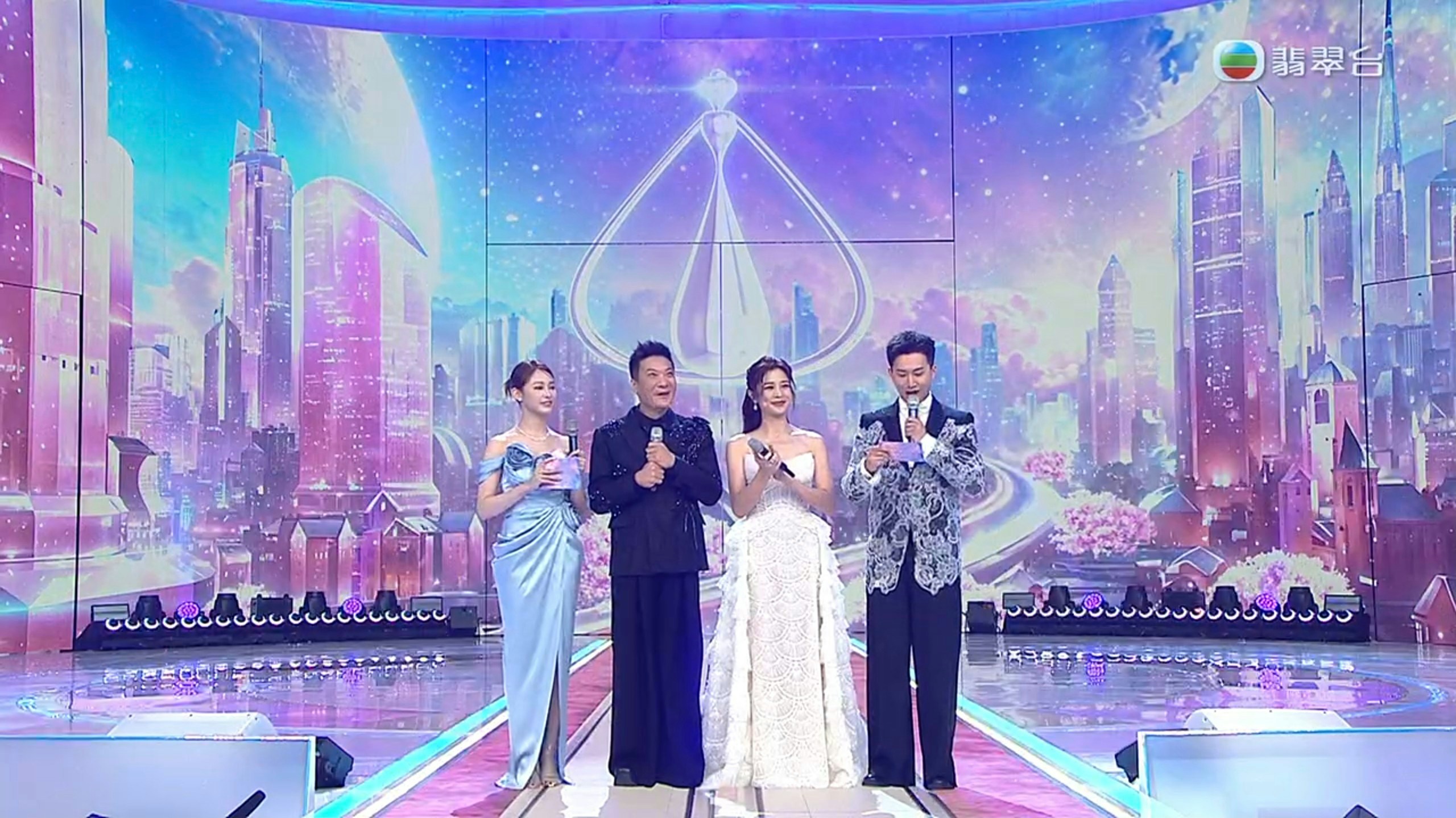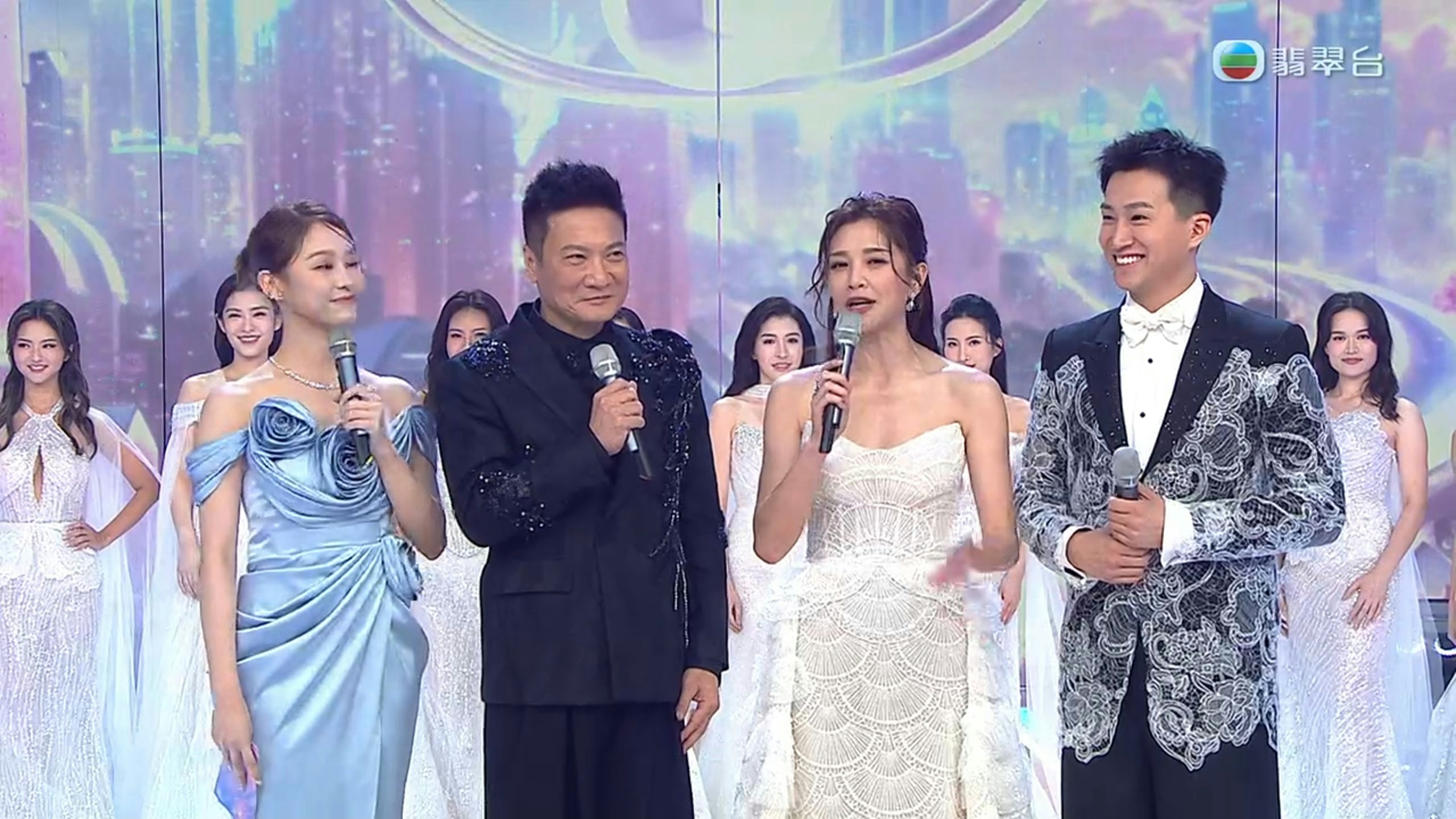今屆港姐決賽司儀由葉蒨文、錢嘉樂、麥美恩、曾展望擔任。(TVB)