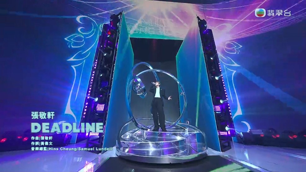 張敬軒為港姐決賽打頭陣。(電視截圖)