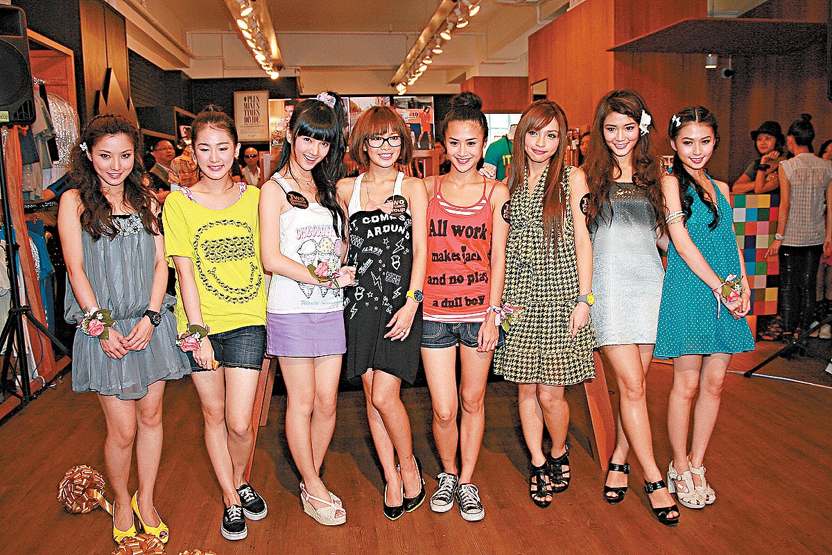 「八模兵團」成員︰(左起)Crystal(溫雅妍)、Evelyn(蔡穎恩)、Anjaylia(陳嘉寶)、Hailey C.(陳俞希)、Dada(盧頌之)、Annie G.(吳燕安)、A.Lin(裴殷)及Isabel L.(賴慧敏)。(視覺中國)