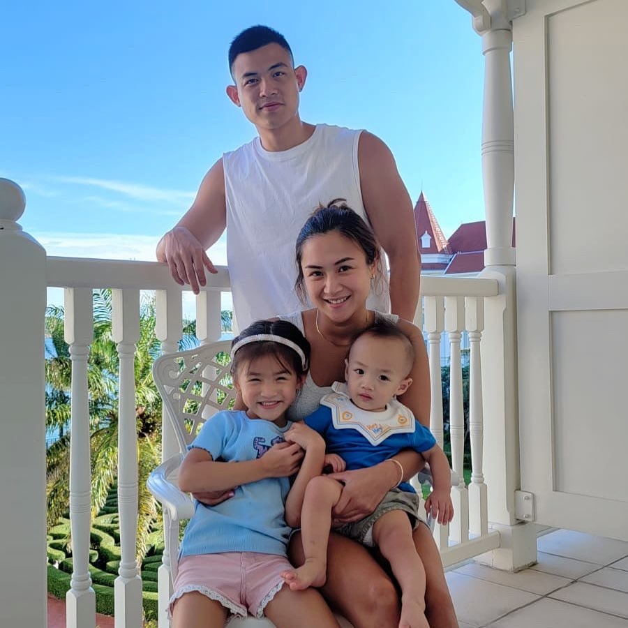 盧頌之與大隻仔趙勁皓(King)結婚,組成一家四口。((IG@dadaloooo)