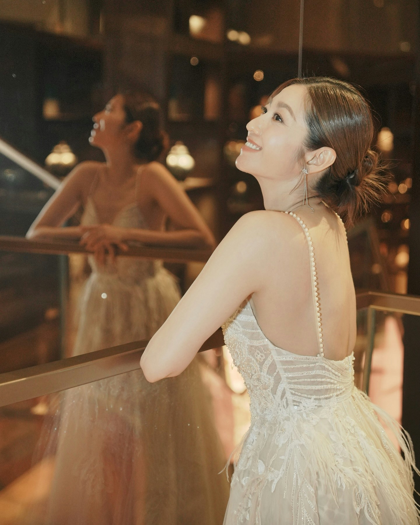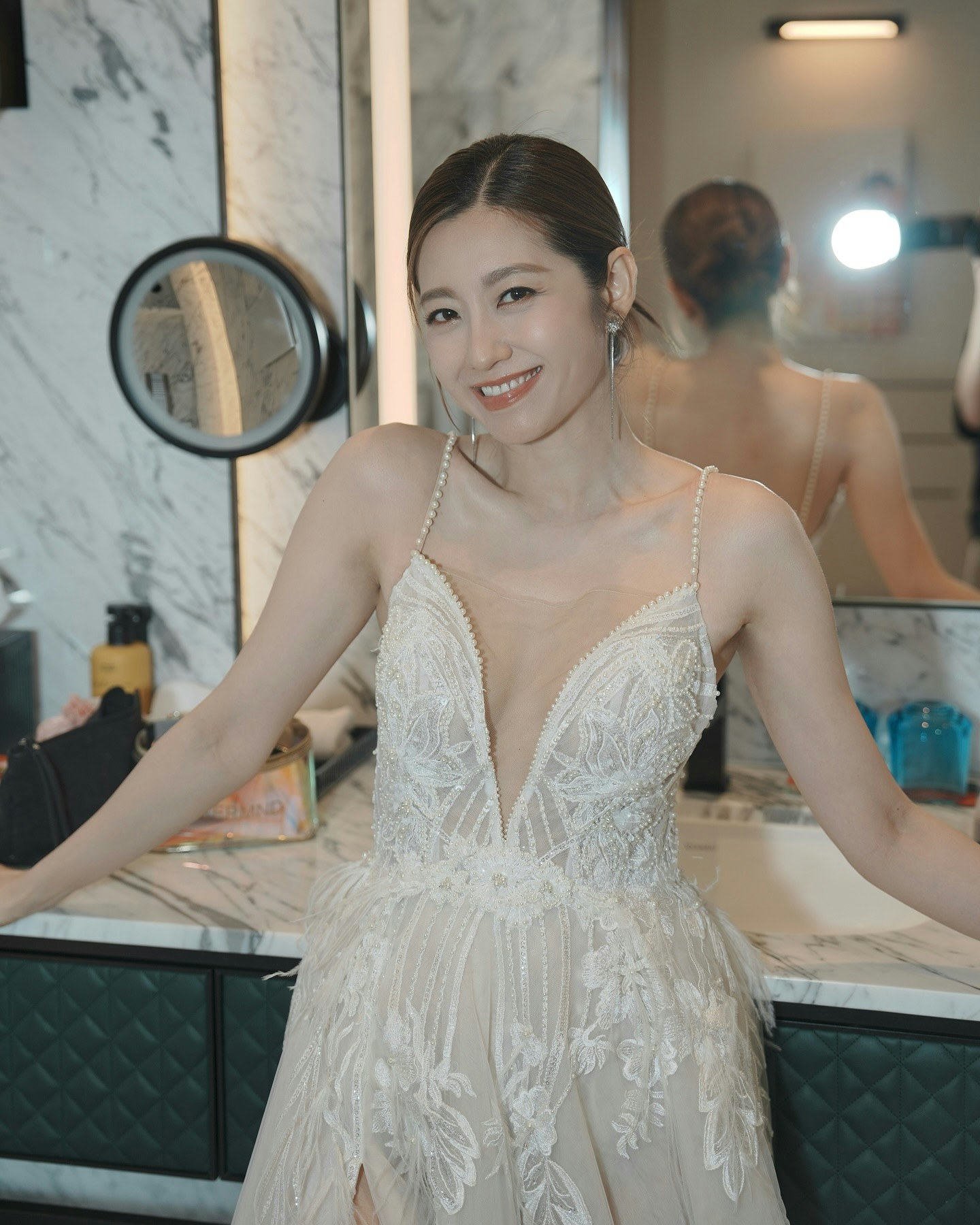 陳自瑤以白色吊帶長裙性感現身。(IG:@chenchiyiu)