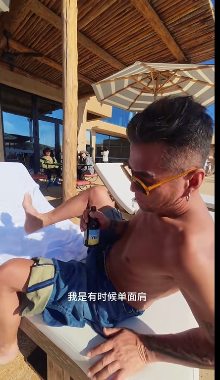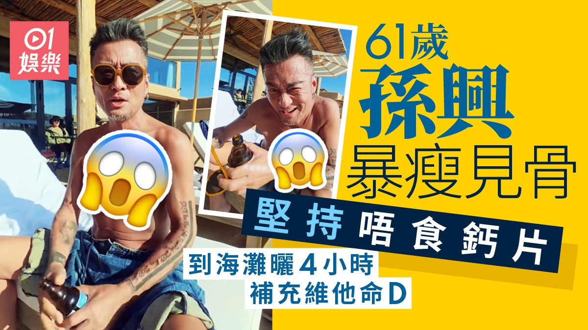 61歲的孫興近年長駐內地,他曾以《倚天屠龍記》的楊逍一角走紅,可惜他在2011年因在北京涉毒被捕,更被列為劣跡藝人受到封殺,無得拍劇的日子,孫興被揭要唱夜場婚宴、做DJ打碟、當司機維生。不過憑住往日的人氣,他改為拍攝視頻搵食,近日他在海灘被途人捕獲,被指瘦了幾個碼,膚色黑如炭,昔日的「最型楊逍」再不復見。孫興瘦了很多。(小紅書)孫興近日在海灘被野生捕獲,戴上墨鏡,赤裸上身正在曬太陽,早已「登六」的他,整個人又乾又瘦,膚色黝黑,完全不是當年的型男模樣。他透露一般會曬4小時,並會轉身曬身上的不同部位,又教路不用吃鈣片,每天出來曬太陽,已可以補充維他命D,其後他還除了黑超,擺出「太白金星」的招牌動作,可謂「人老心不老」,甚為貪玩。 曬不同部位。(小紅書) 孫興指曬4小時,可吸收維他命D。(小紅書) 心境年輕。(小紅書)