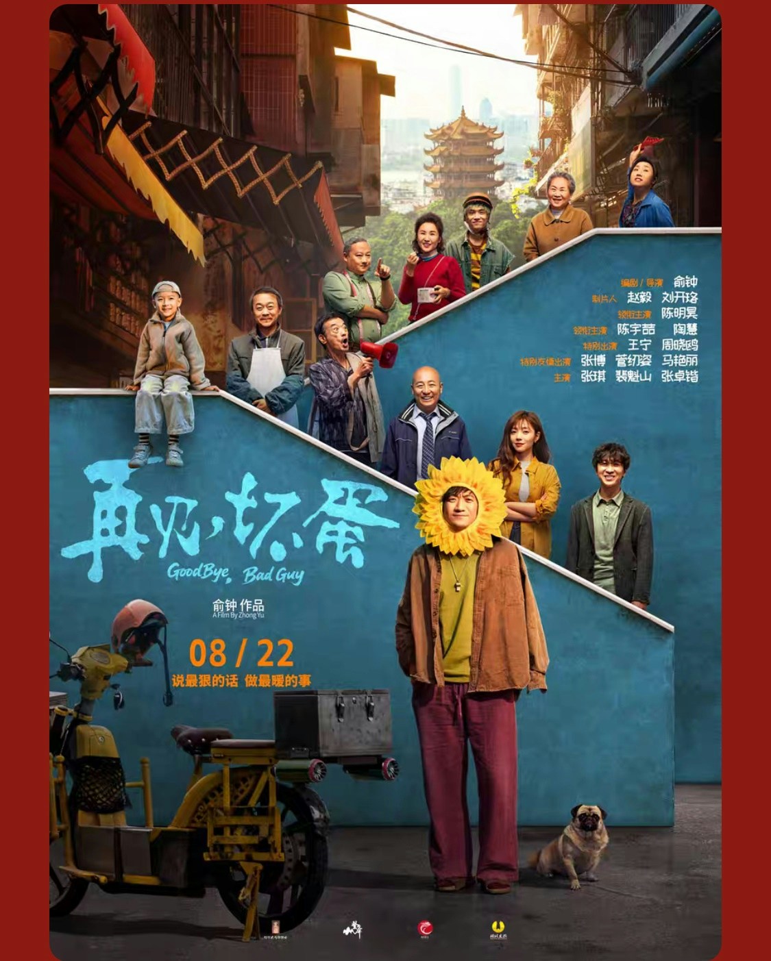 《再見,壞蛋》是一部溫情電影,講述武漢市井小民大武(陳明昊 飾)因追債而結識了小男孩豆豆(陳宇喆 飾),在得知豆豆的遭遇故事後,他就決心幫助豆豆,在過程中大武就與街坊們一起為豆豆實現遺願,展現了平凡人善良與溫情的一面。