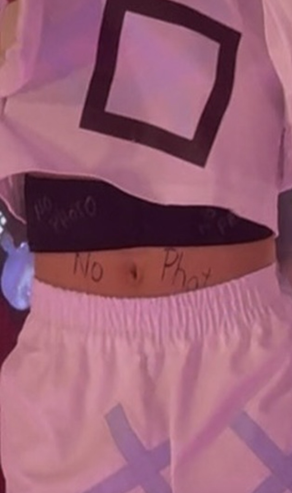 林家謙跳起時露出「No Photo」7個英文字。(Threads圖片)