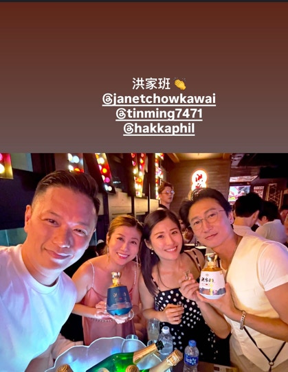 周家蔚亦有在IG Story分享場內的花絮,洪天明拿咪向老婆講生日快樂:「佢(周家蔚)啱啱過生日,Happy birthday,其他我唔講嘞,繼續開心玩」。周家蔚即冧爆將頭挨向老公胸膛,甜蜜滿瀉。當晚亦獲眾多好朋友撐場,當中包括曾自封是「擁抱者」的胡杏兒老公李乘德,不過今次合照完全沒有「手多多」攬攬,負責揸手機與劉晨芝及洪氏夫婦合照。