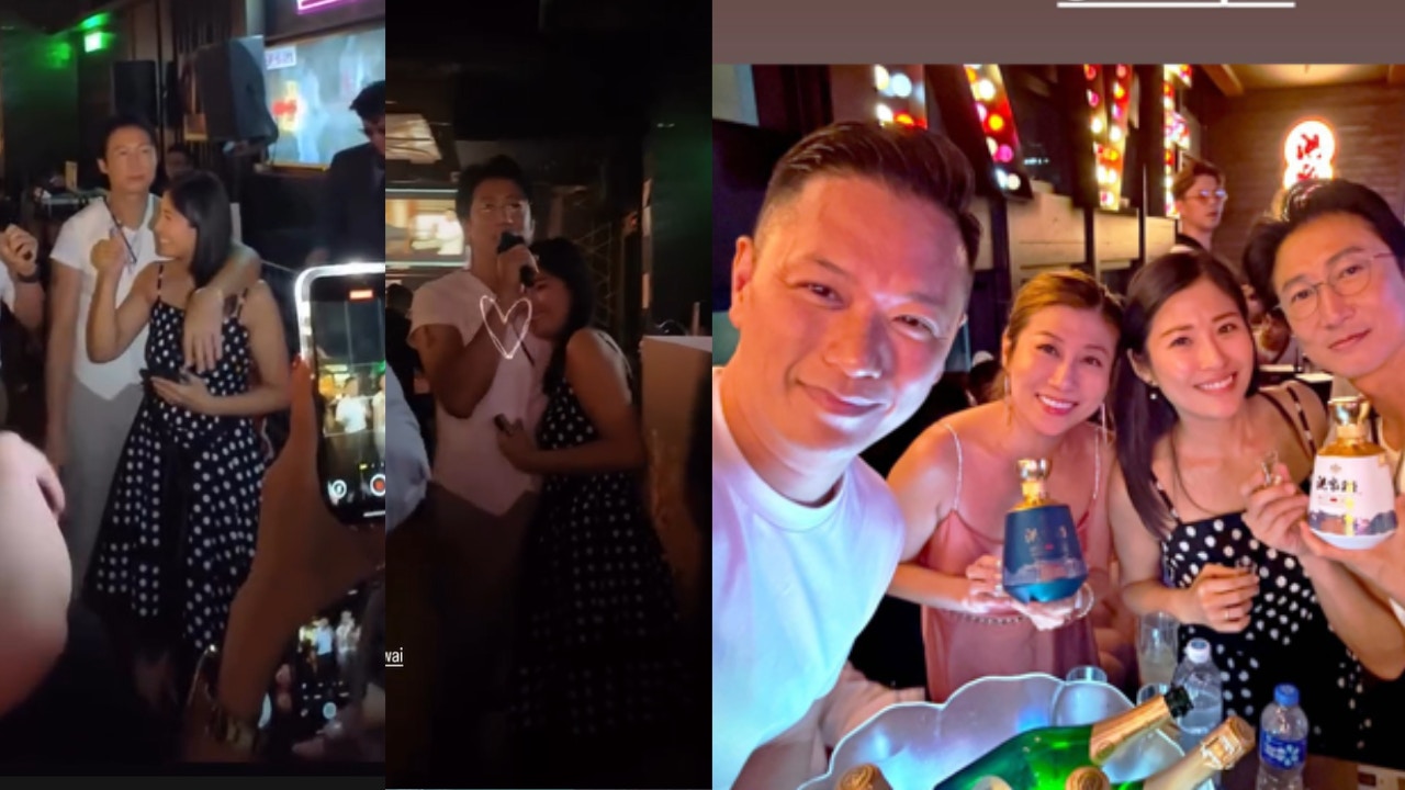 周家蔚亦有在IG Story分享場內的花絮,洪天明拿咪向老婆講生日快樂:「佢(周家蔚)啱啱過生日,Happy birthday,其他我唔講嘞,繼續開心玩」。周家蔚即冧爆將頭挨向老公胸膛,甜蜜滿瀉。當晚亦獲眾多好朋友撐場,當中包括曾自封是「擁抱者」的胡杏兒老公李乘德,不過今次合照完全沒有「手多多」攬攬,負責揸手機與劉晨芝及洪氏夫婦合照。
