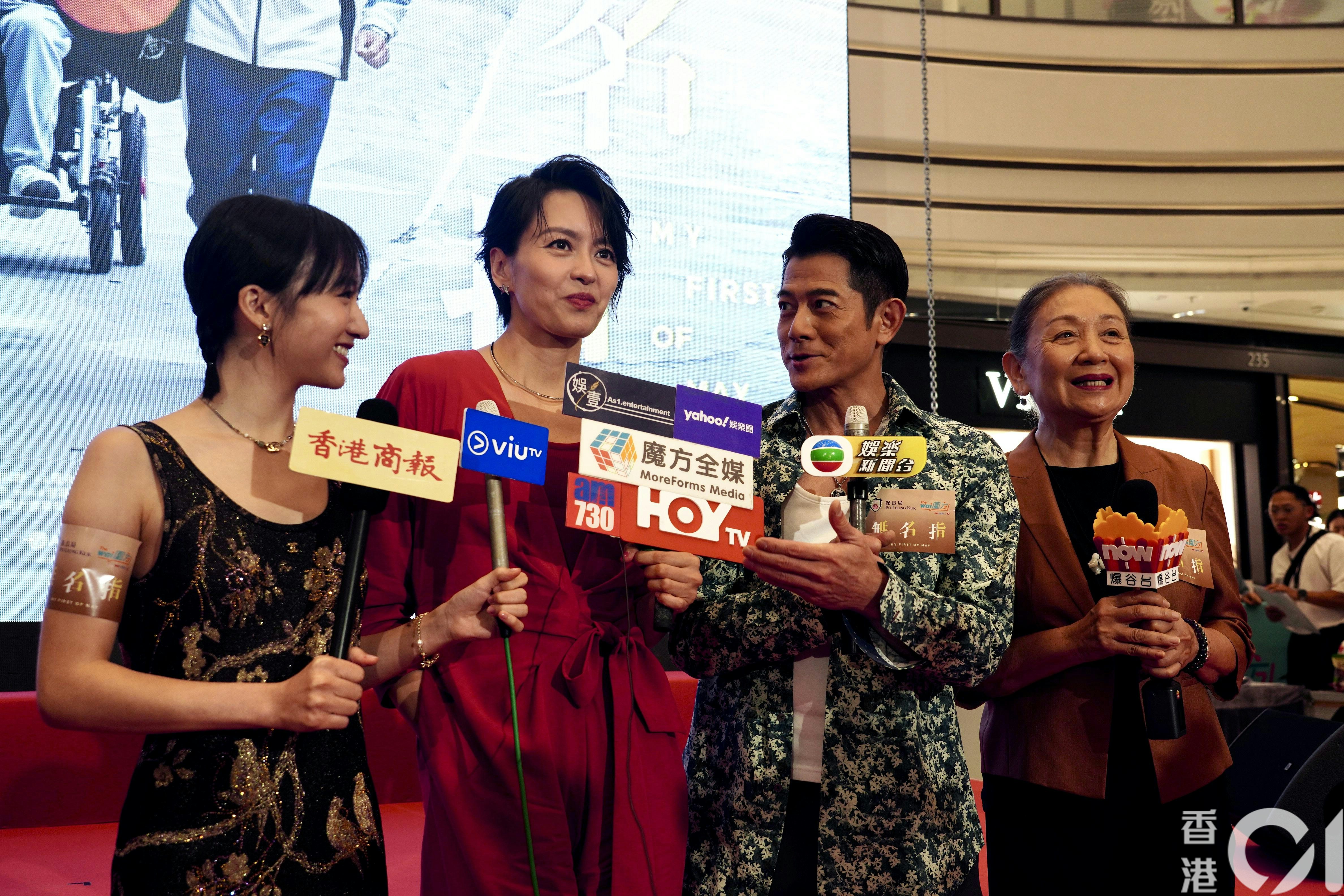 郭富城、鮑起靜、梁詠琪及許恩怡於《無名指》首映禮接受傳媒訪問。(莫匡堯 攝)