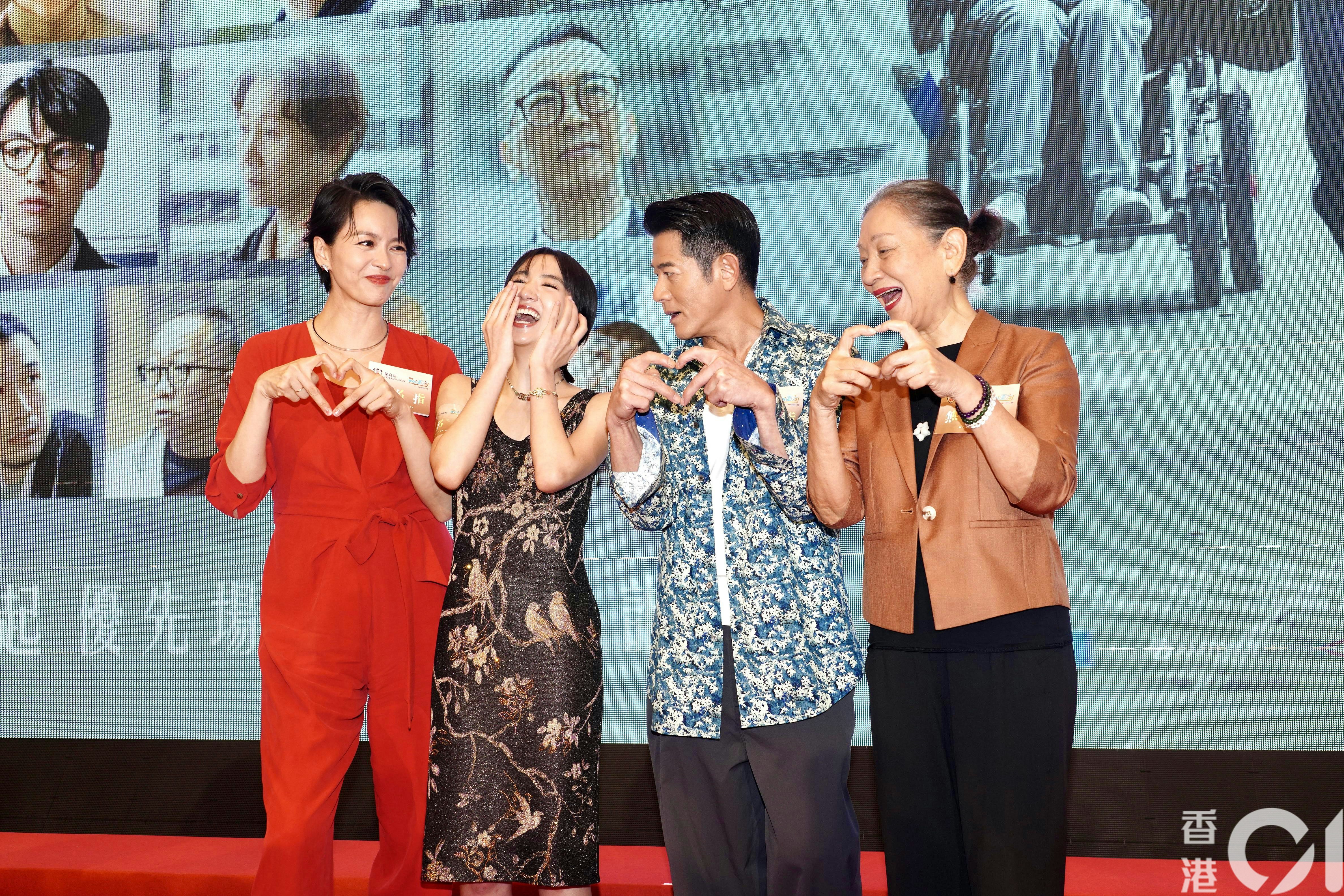 郭富城、鮑起靜、許恩怡與梁詠琪「一家人」的互動非常溫馨!(莫匡堯 攝)