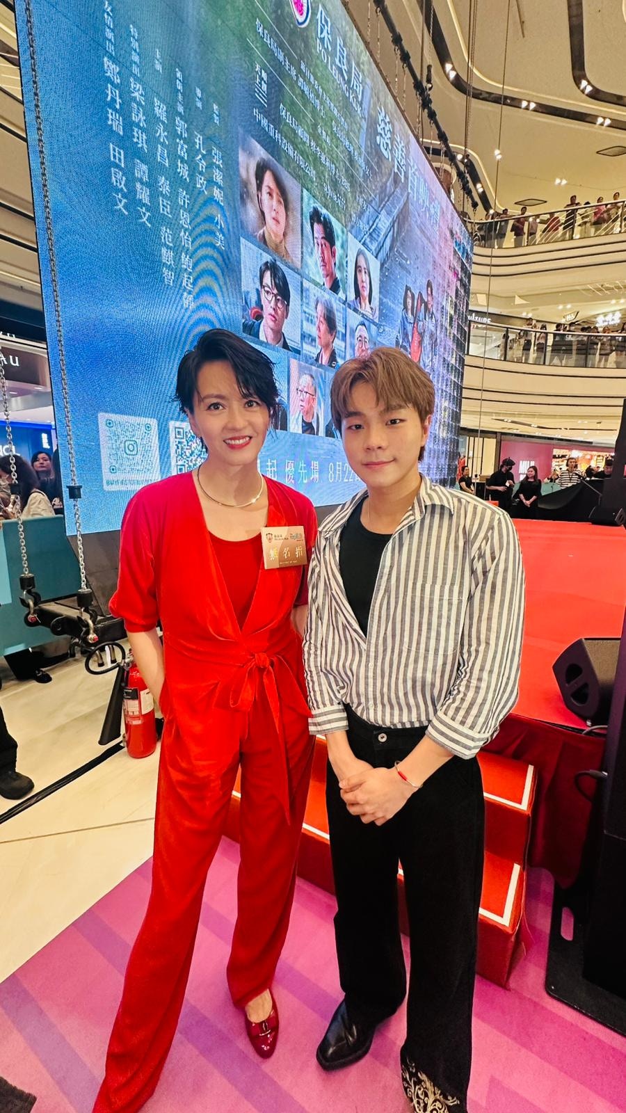 環球男新人 Regent 林暐竣出席《無名指》首映時,與Gigi梁詠琪合照。(大會提供)