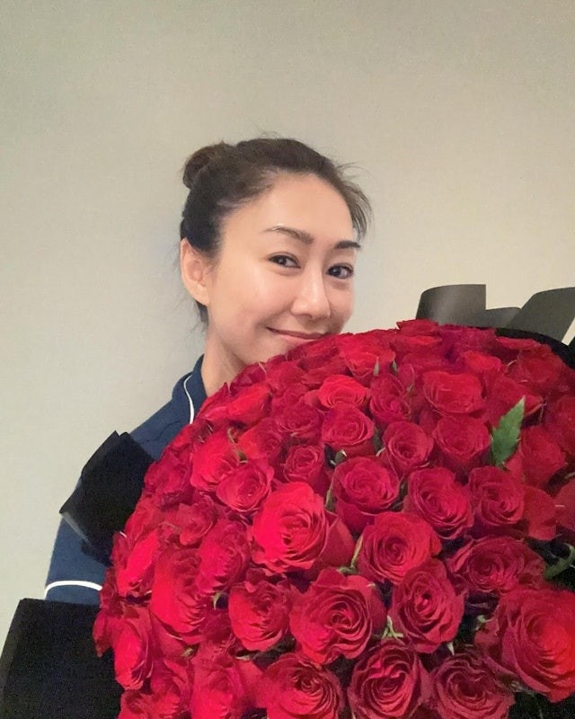 胡定欣去年9月生日時,收到勁大紮玫瑰花,但她就表示是樂小姐等公司同事送。(IG@nwuuu)