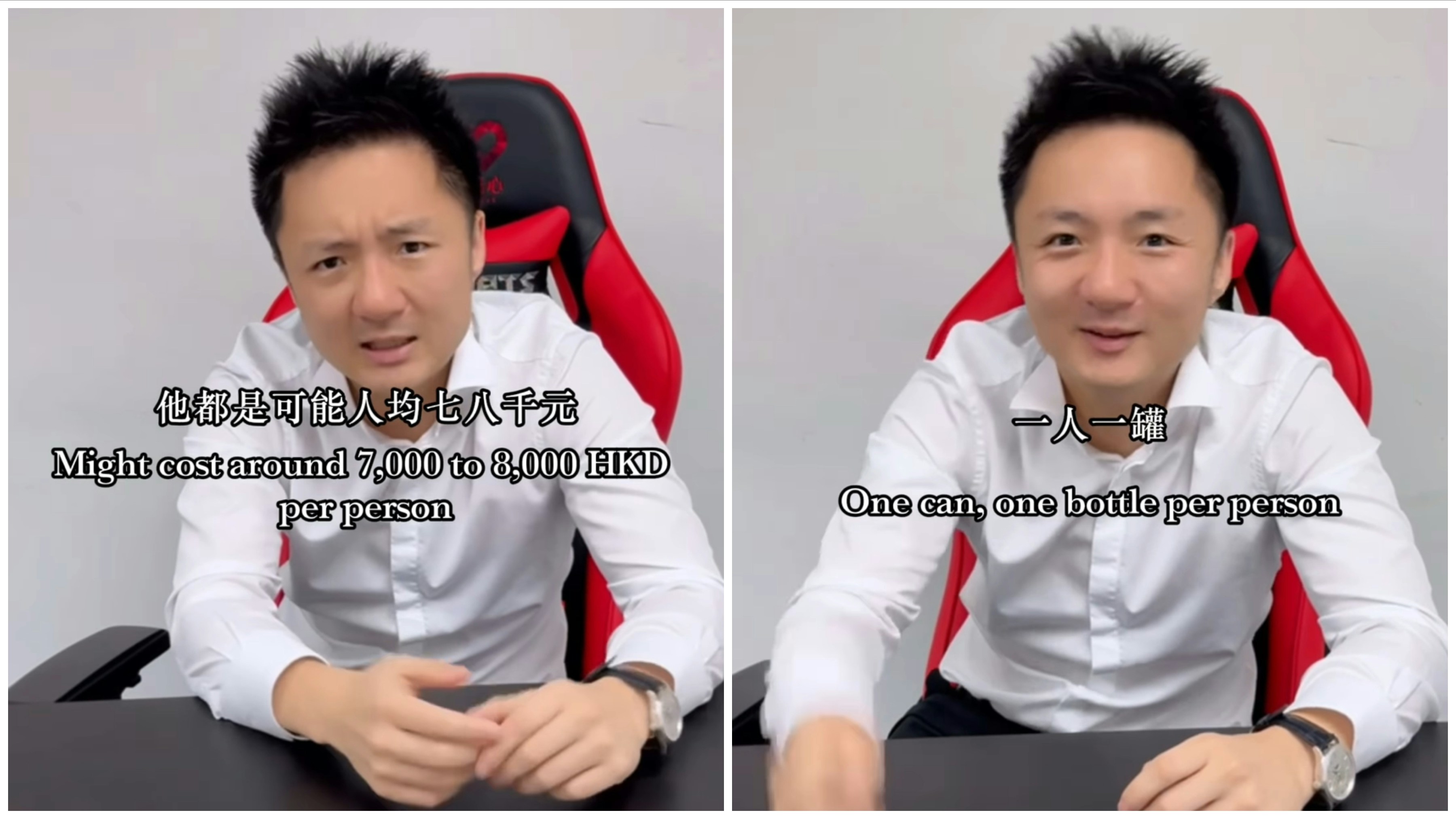 鍾培生拍片解釋,文華東方中菜廳價錢合理,平常與朋友食飯包房開The Krug Room的話也只需兩到三萬。他猜測,他們兩人可能是食了魚子醬再加開酒:「我相信他餐飯應該幾好食。佢個wine 40幾頁紙,都係mark up一倍唔會太貴。可能係開咗最靚嗰隻Royal Caviar Club,都係7千幾8千。可能係嗌咗支特別版Blanc,之後可能嗌咗支Corton Montrachet,應該係兩支。如果食咗8萬,可能係『拎走個磅佢』。」