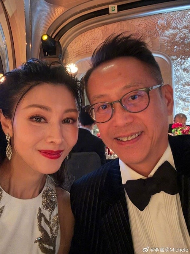 李嘉欣與老公許晉亨拍拖出席晚宴。(微博@李嘉欣Michele)