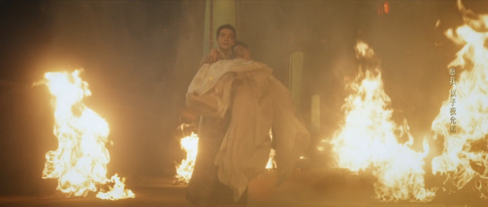 在煙火燦爛的天燈節上,一個巨型天燈突然失控,原來是「玄蛇」化成天燈在四處作亂,武禎(田曦薇 飾)隨即化身為貓妖應戰,但因妖力懸殊,被對方狠狠擊倒在地。在眾人慌忙逃跑時,梅逐雨(許凱 飾)卻向反方向狂奔,奮不顧身地衝入火海。當他看見倒在地上、意識模糊的武禎,焦急與心疼交織成深情呼喚,在混亂中顯得格外浪漫,也展現出梅逐雨義無反顧的愛意!