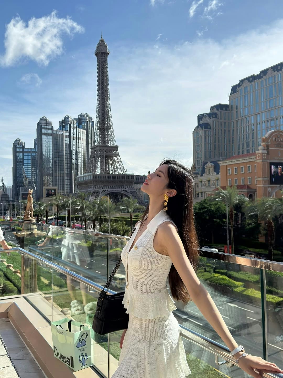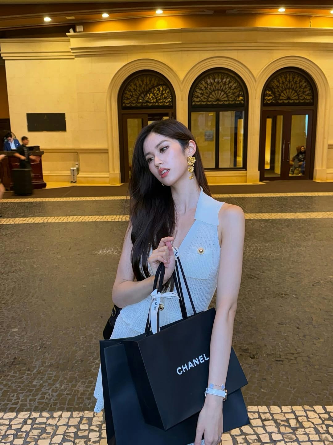 今日(30/8)楊梓瑤在社交平台分享在澳門拍下的靚相,相中的她穿着白色小禮服外,還拿着幾個Chanel紙袋,顯然在當地買了很多「戰利品」。再細心一看,也不難發現她孭着一個Chanel「流浪包」Gabrielle de Chanel 系列,Chopard Happy Sport腕錶及Van Cleef&Arpels手鏈。據網上資料顯示,三者價錢分別為5萬、6萬及5萬5左右,價錢相宜且低調有貴氣。