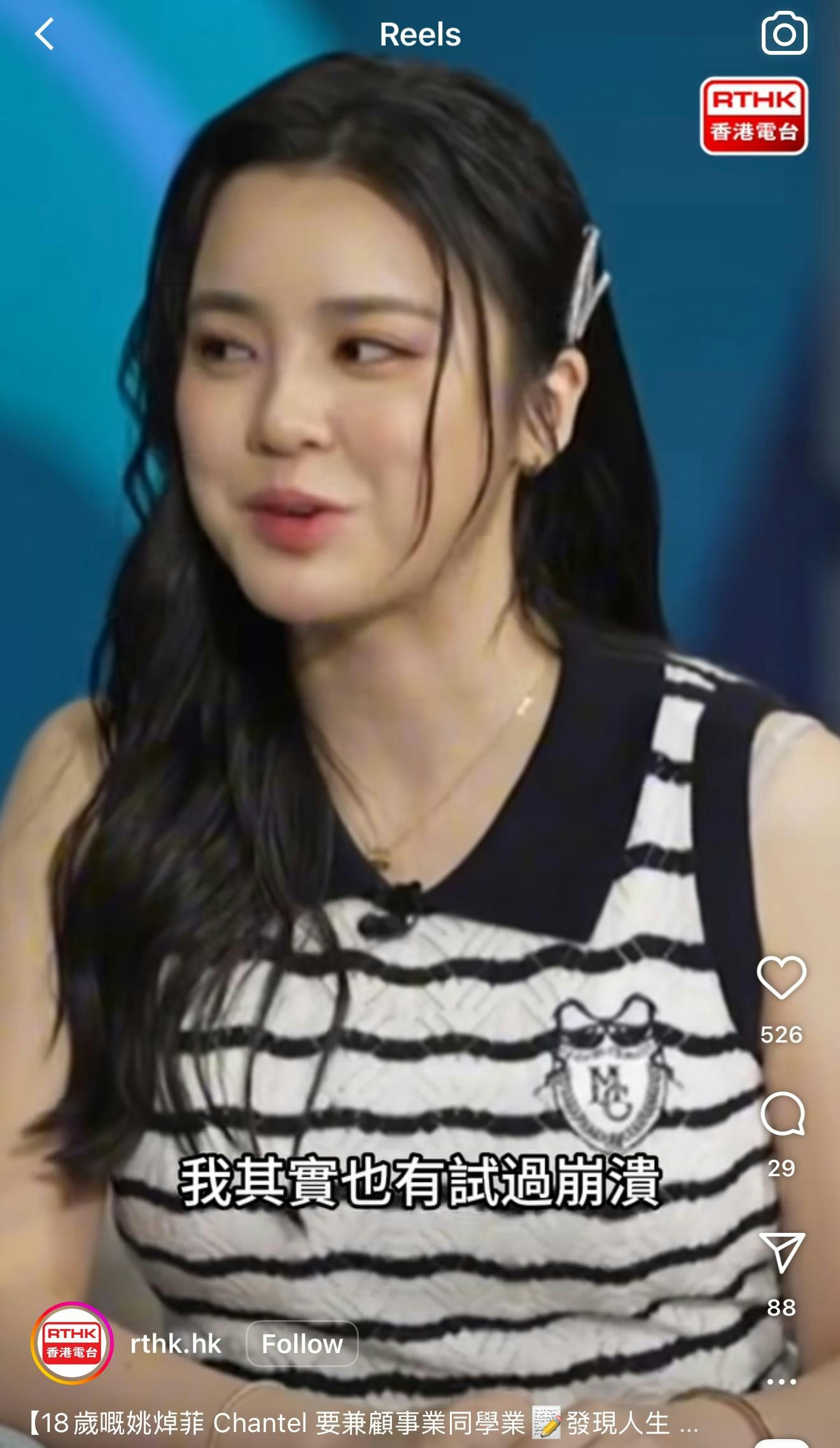 18歲的「聲夢小花」姚焯菲(Chantel)將離港飛抵美國入讀紐約大學,成為美國流行天后Lady Gaga及Taylor Swift師妹。姚焯菲離港前接受港台訪問,曾提到外國生活試過崩潰兼永別香港。姚焯菲現身旺角高清圖。(ig圖片)姚焯菲上港台節目大呻崩潰,她說:「我其實都有試過崩潰,我喺新西蘭讀書嘅時候覺得唱歌同讀書,兩件事一齊做好辛苦。」她指:「有一段時間,我唔想返香港。」之後姚焯菲安慰自己,「你捱過呢段時間就可以啦,因為係你追夢嘅一部分,你要捱過去先可以去到下一步。」 姚焯菲接受港台訪問試過崩潰。(影片截圖) 姚焯菲(Chantel )。(陳順禎攝)