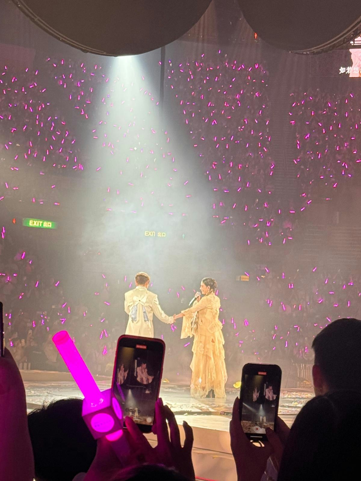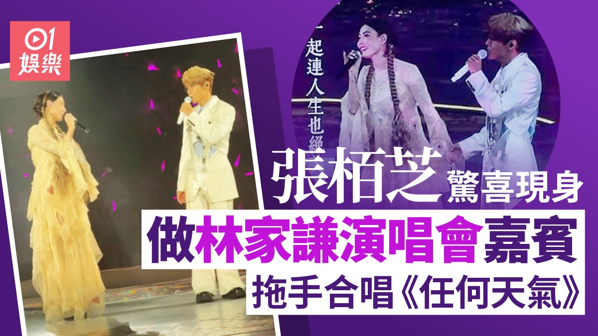 人氣歌手林家謙(Terence Lam)最近在紅館舉行《White Summer》十場演唱會,面子十足,每晚邀請不同的前輩歌手擔任表演嘉賓,包括樂壇天后鄭秀文、楊千嬅、梁詠琪、莫文蔚、鄧麗欣等粒粒大星現身助陣。今晚(30日)來到倒數第二場,久未在香港露面的張栢芝驚喜登場栢芝紮住兩條孖辮,穿上薄紗裙,少女感十足,二人拖手合唱《任何天氣》,全場揮動螢光棒,掀起高潮。張栢芝驚喜現身林家謙演唱會做嘉賓。 二人手拖手合唱。 張栢芝與林家謙合唱《任何天氣》。 林家謙第二次在紅館舉行演唱會。今年4月,謝霆鋒在啟德舉行一連四場《Evolution Nic Live進化演唱會》,兩位兒子17歲謝振軒(Lucas)與14歲謝振南(Quintus)激罕公開支持爸爸,但過張柏芝未有出現,由霆鋒媽媽「拉姑」狄波拉陪伴左右。5月份,張栢芝現身澳門出席《水舞間》水上匯演,身穿紅色長裙加黑紗圍巾配金色高跟鞋以及紅色喱士手套登場,古典味十足。 17歲的Lucas和14歲的Quintus早前睇爸爸謝霆鋒演唱會,成為焦點。(網上圖片) Lucas與Quintus連續兩晚撐爸爸,嫲嫲狄波拉陪伴左右。(資料圖片/葉志明攝) 張栢芝今年5月現身澳門出席《水舞間》水上匯演。(資料圖片/葉志明攝) 當日大會一早表明栢芝不受訪。(資料圖片/葉志明攝) 充滿古典味。(資料圖片/葉志明攝)