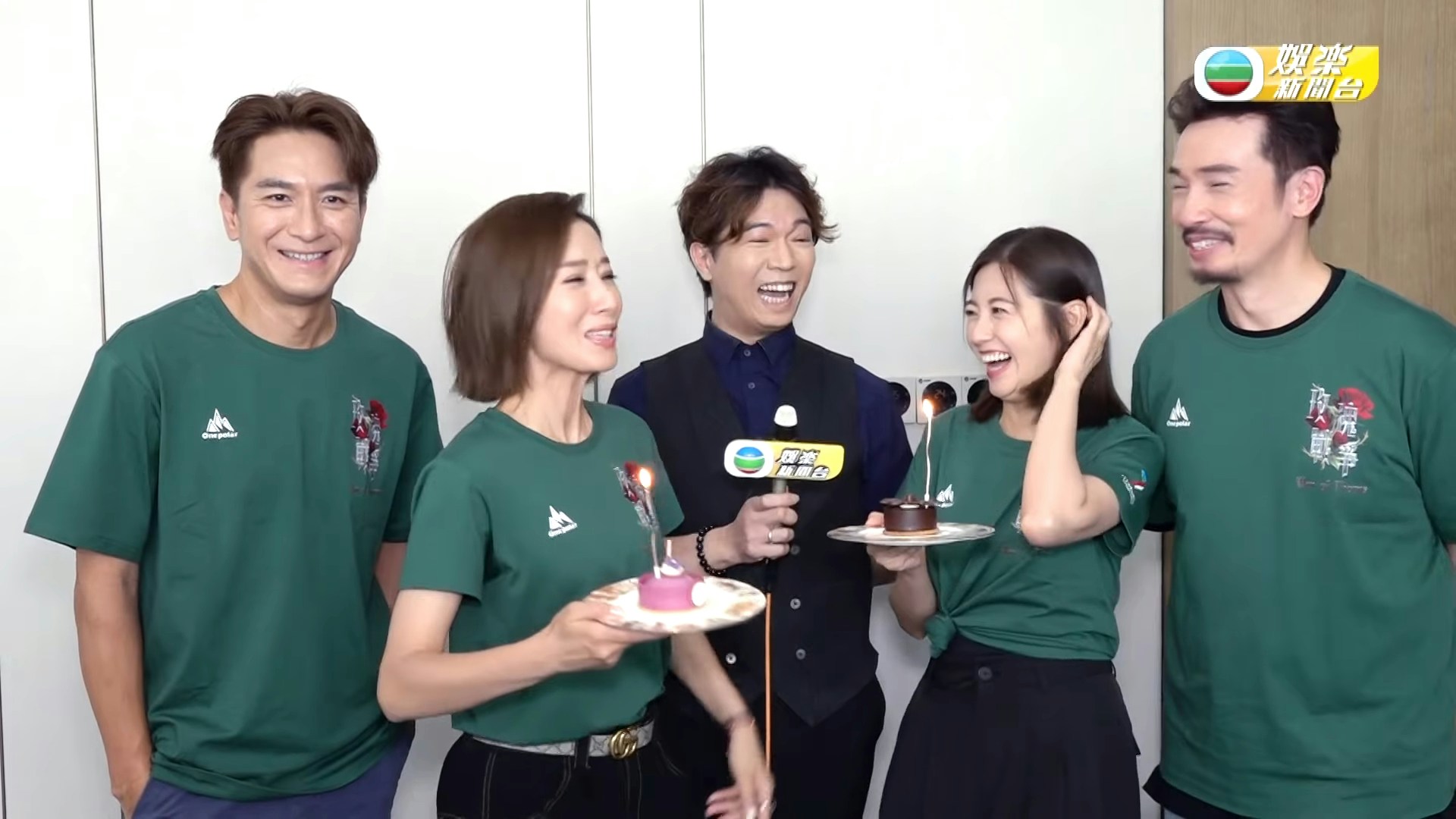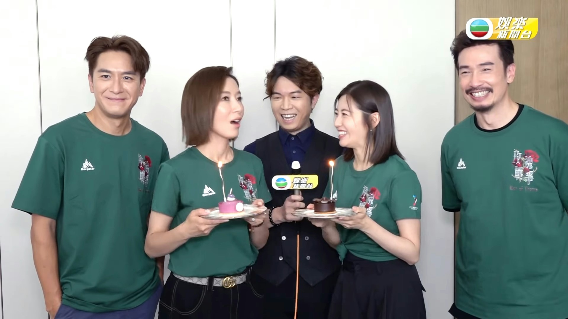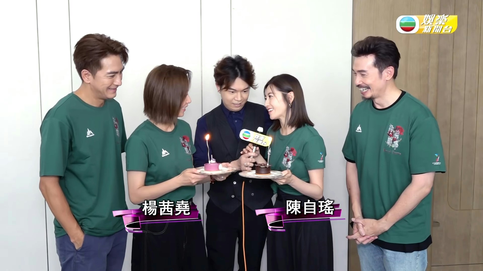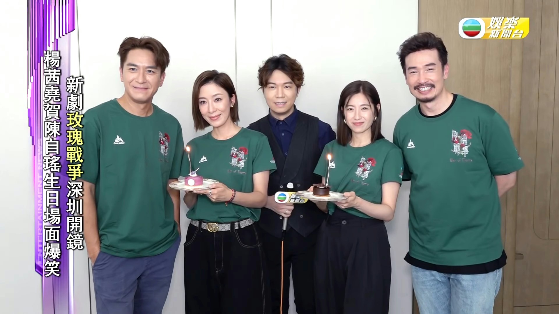 楊茜堯、陳自瑤、陳豪、馬國明等前日(27日)於深圳出席新劇《玫瑰戰爭》開鏡儀式,當日是陳自瑤(Yoyo)的44歲生日正日,而楊茜堯亦將於本周六(30日)生日,TVB娛樂新聞台特別派主播王鎮泉送上生日蛋糕祝賀。(TVB 娛樂新聞台)