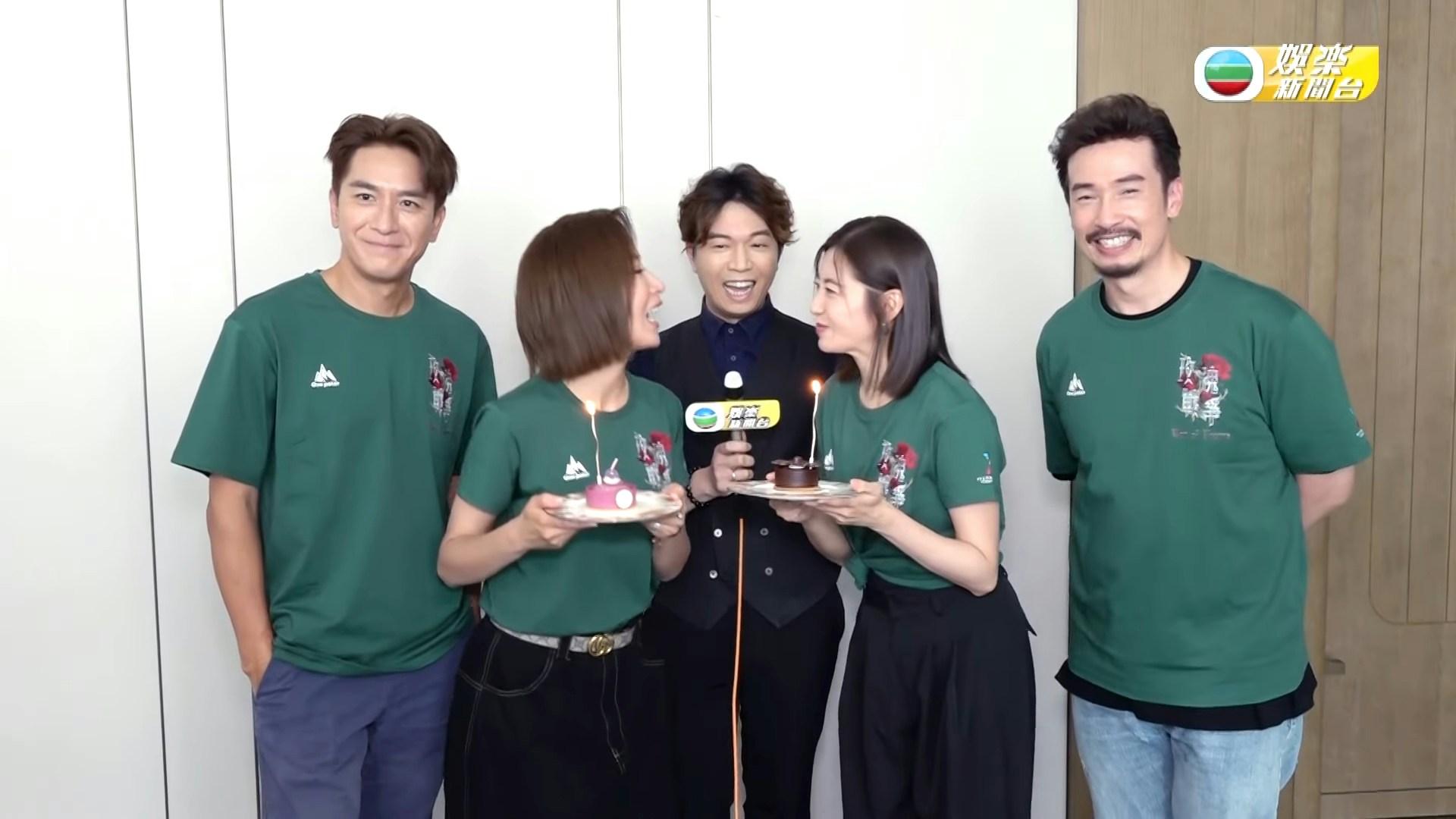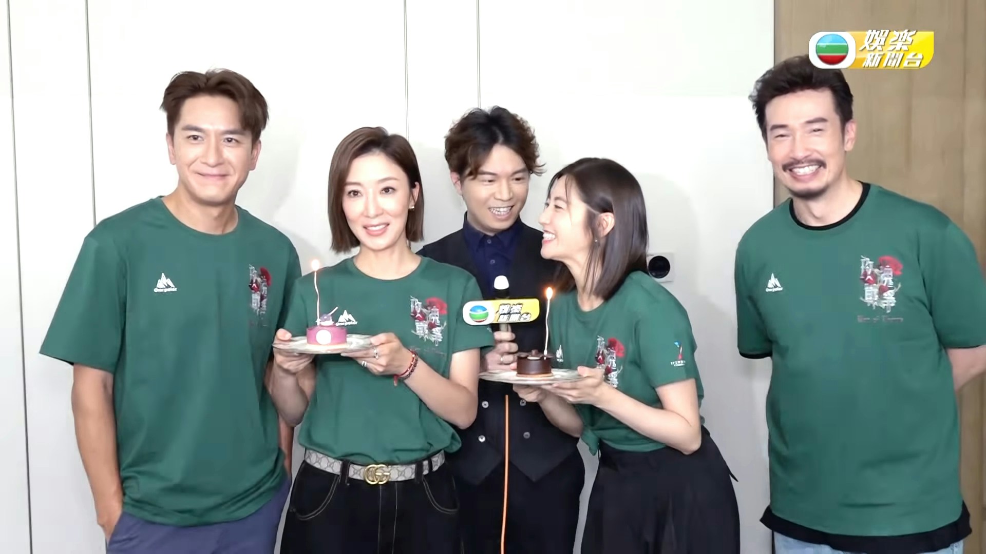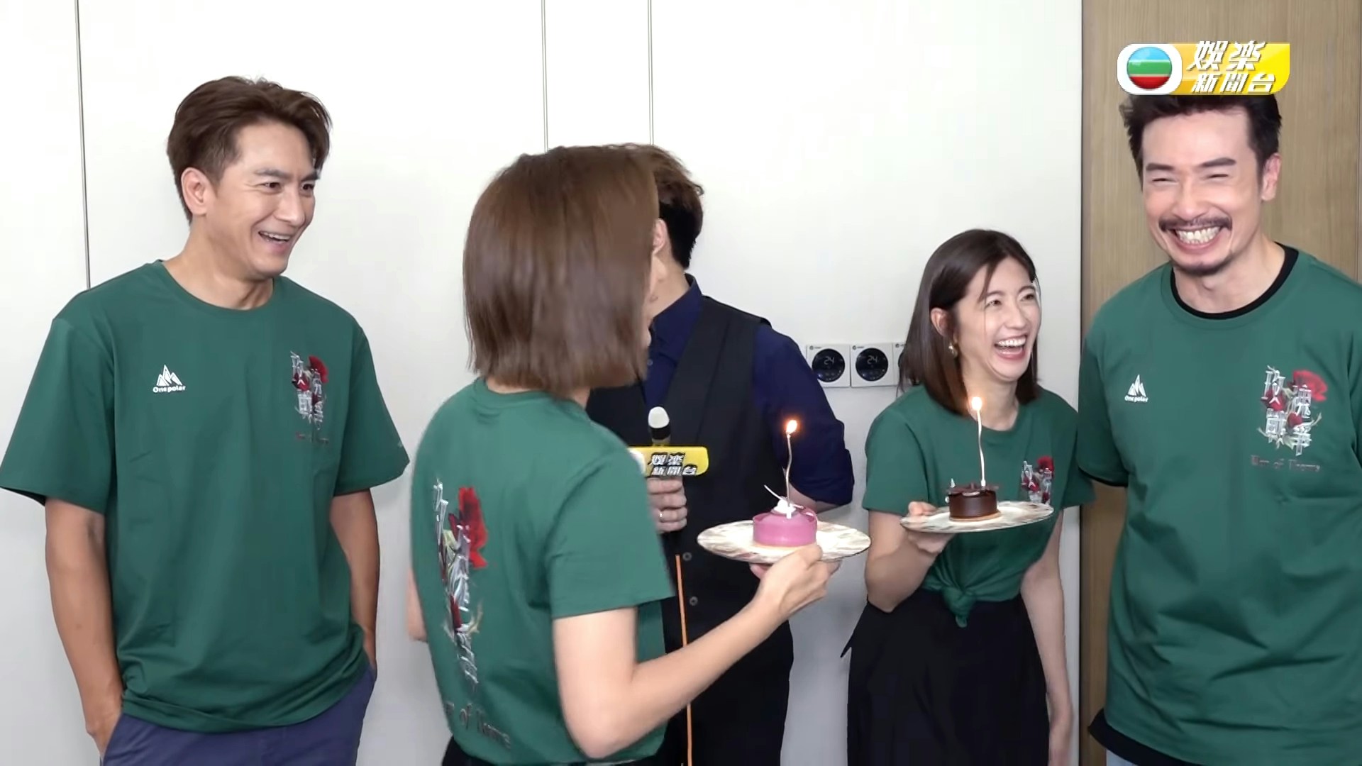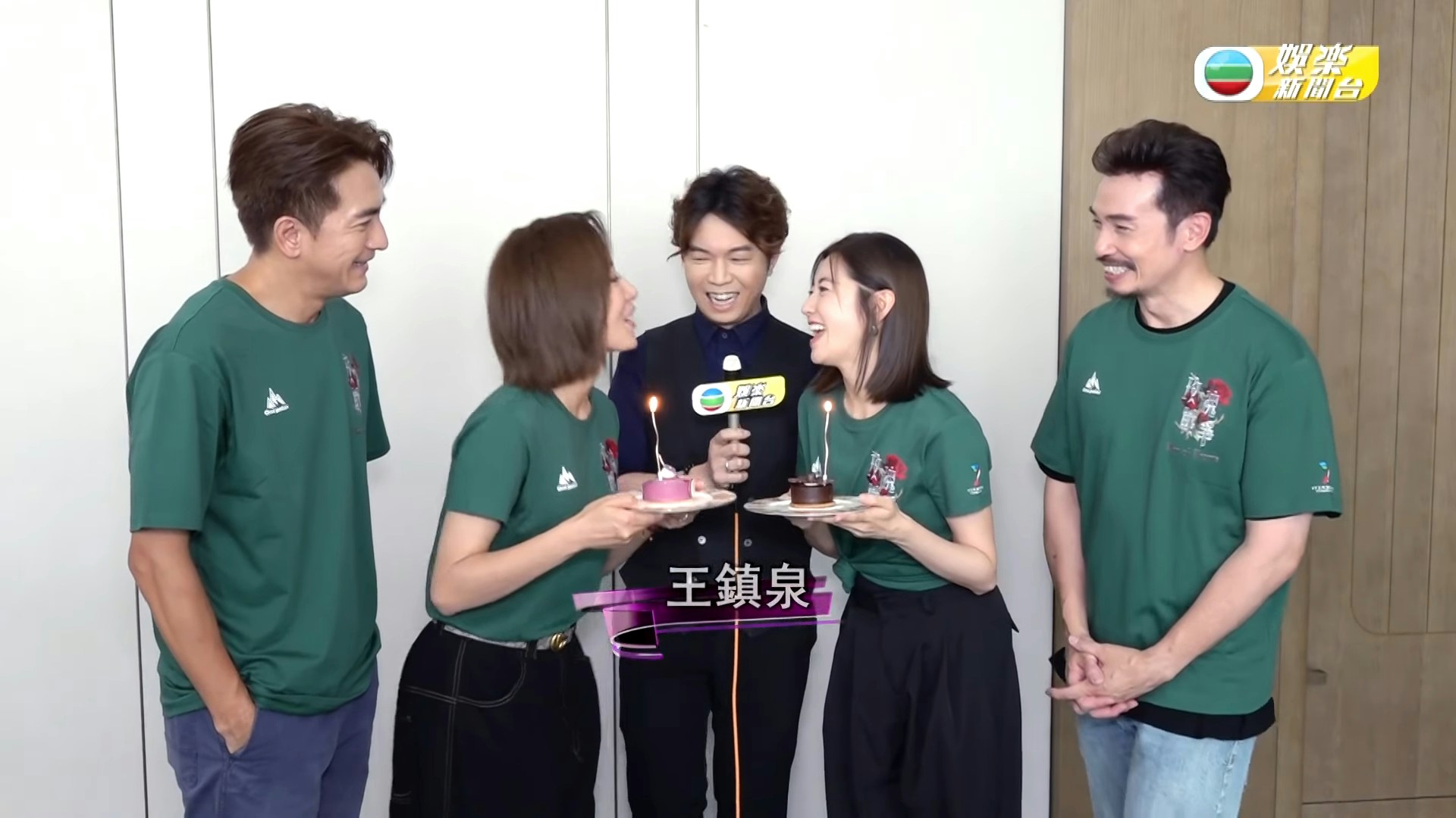 楊茜堯、陳自瑤、陳豪、馬國明等前日(27日)於深圳出席新劇《玫瑰戰爭》開鏡儀式,當日是陳自瑤(Yoyo)的44歲生日正日,而楊茜堯亦將於本周六(30日)生日,TVB娛樂新聞台特別派主播王鎮泉送上生日蛋糕祝賀。(TVB 娛樂新聞台)