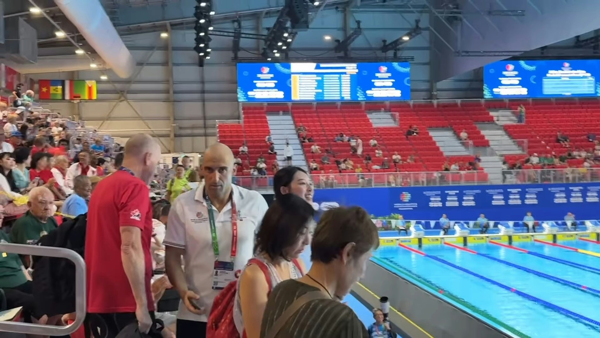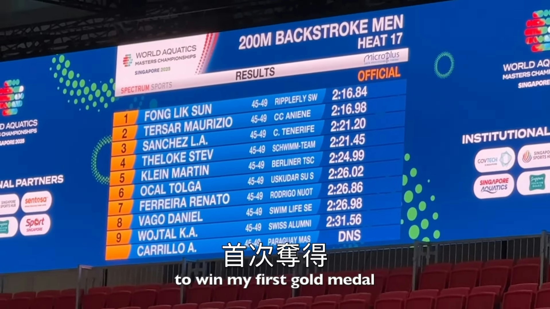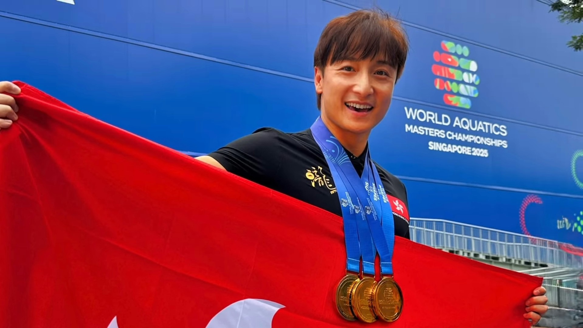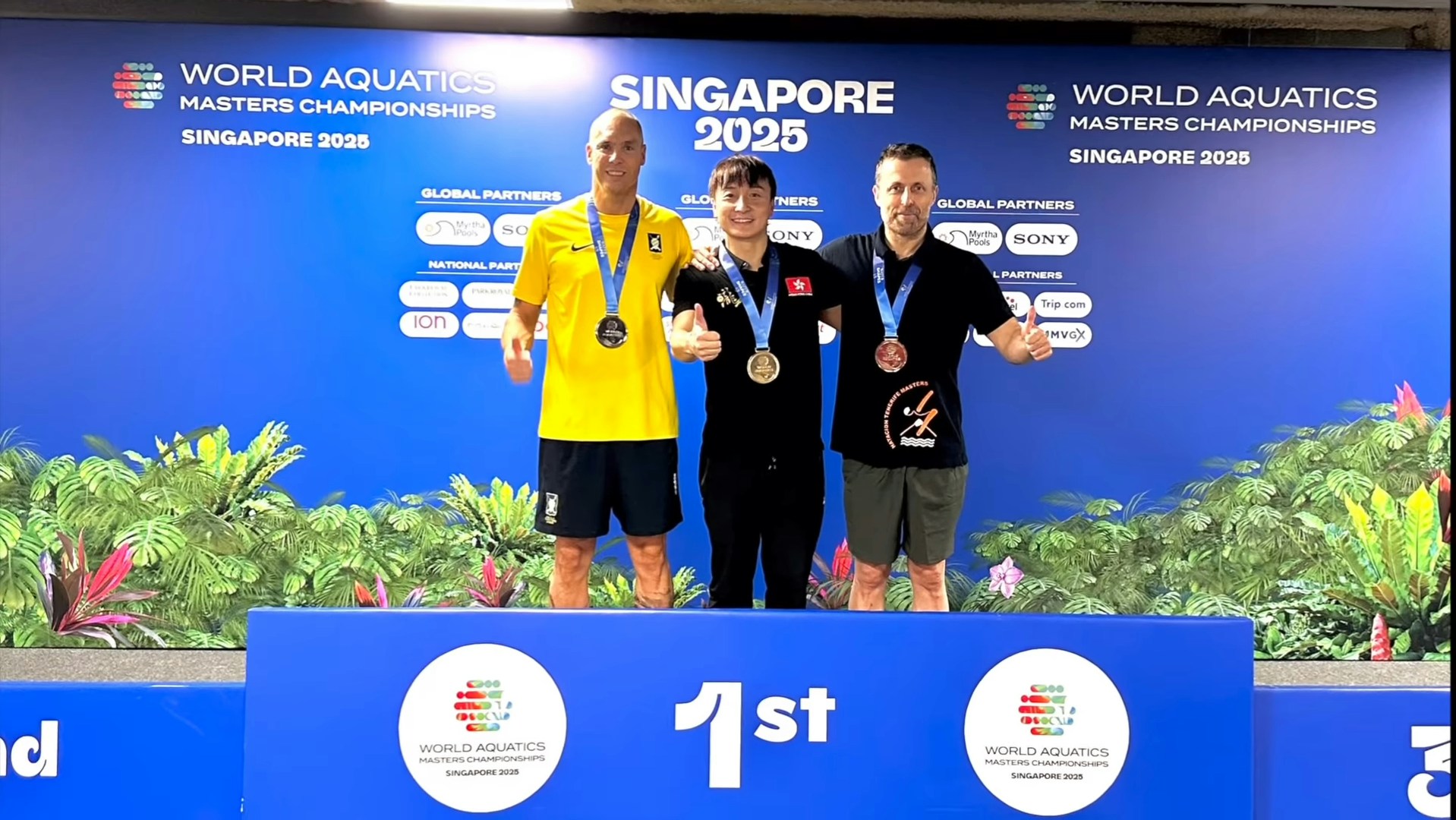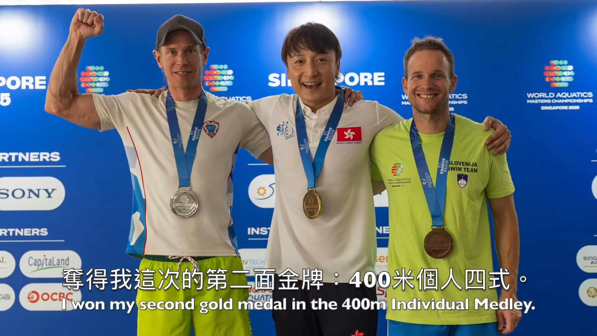 方力申早前參加「2025世界先進游泳錦標賽」奪得金牌,老婆葉萱、父母及細佬都有到場見證。(Facebook@方力申)