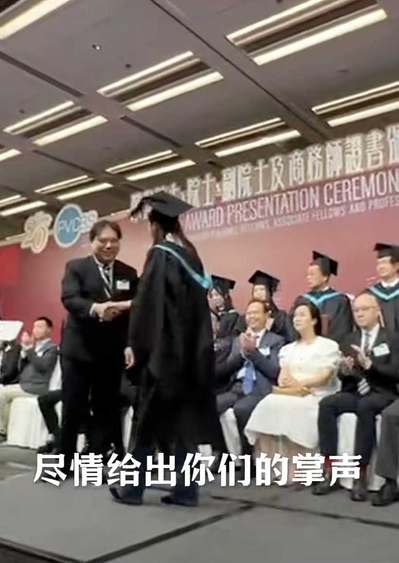 陸詩韻穿上院士袍,上台領取院士證書,不少親朋好友到場祝賀。陸詩韻透露,今次是獲「香港商業專業評審中心」認可為院士,她發文:「盡力是做人做事的基本 榮幸獲『香港商業專業評審中心』認可為院士,再次感謝大家的恭賀,我會繼續將勸補掘!!」並標註「#努力以赴 #孜孜不倦」。