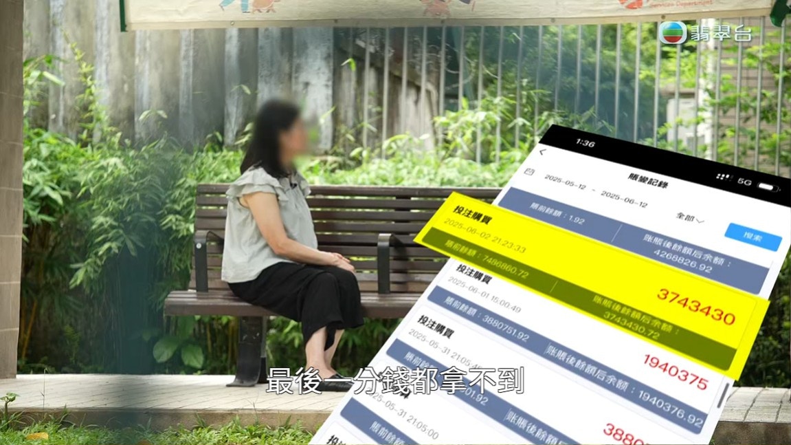 騙徒先叫Mary下載公司的應用程式,之後就有不同的投資方法:「呢度有5個房間,5個投資方法,其實都係買大細嘅。」簡單按幾個鍵就能輕鬆賺到數千元:「打工邊賺到咁多?」之後Mary投放的金額愈來愈大,想把彩金拿走時,對方卻諸多阻撓,最後一元都拿不回:「120幾萬,自己個積蓄加加埋埋有50-60萬,股票又賣咗,同親戚又借咗10萬。」連女兒都借了錢給Mary投資下去。