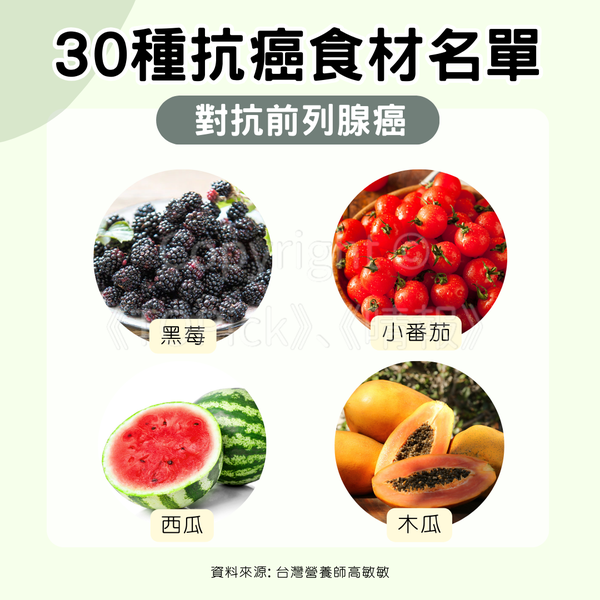- 黑莓、小番茄、西瓜(對抗前列腺癌)