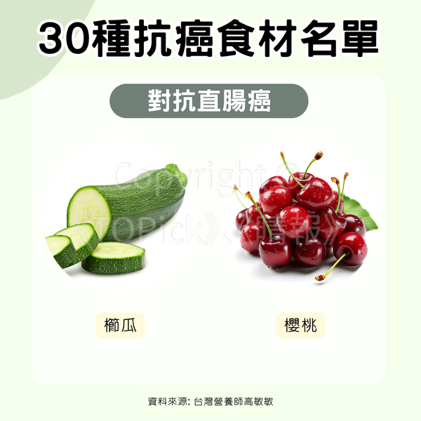 - 櫛瓜、櫻桃(對抗直腸癌)