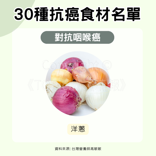 - 洋蔥(對抗咽喉癌)