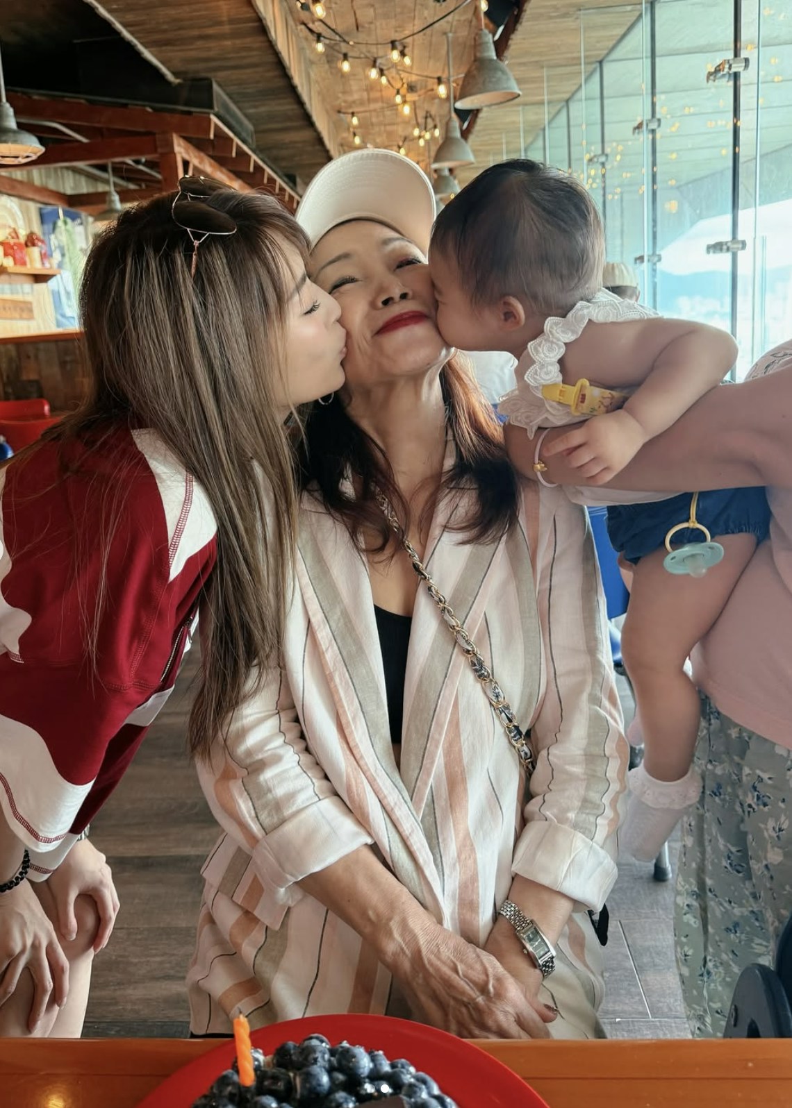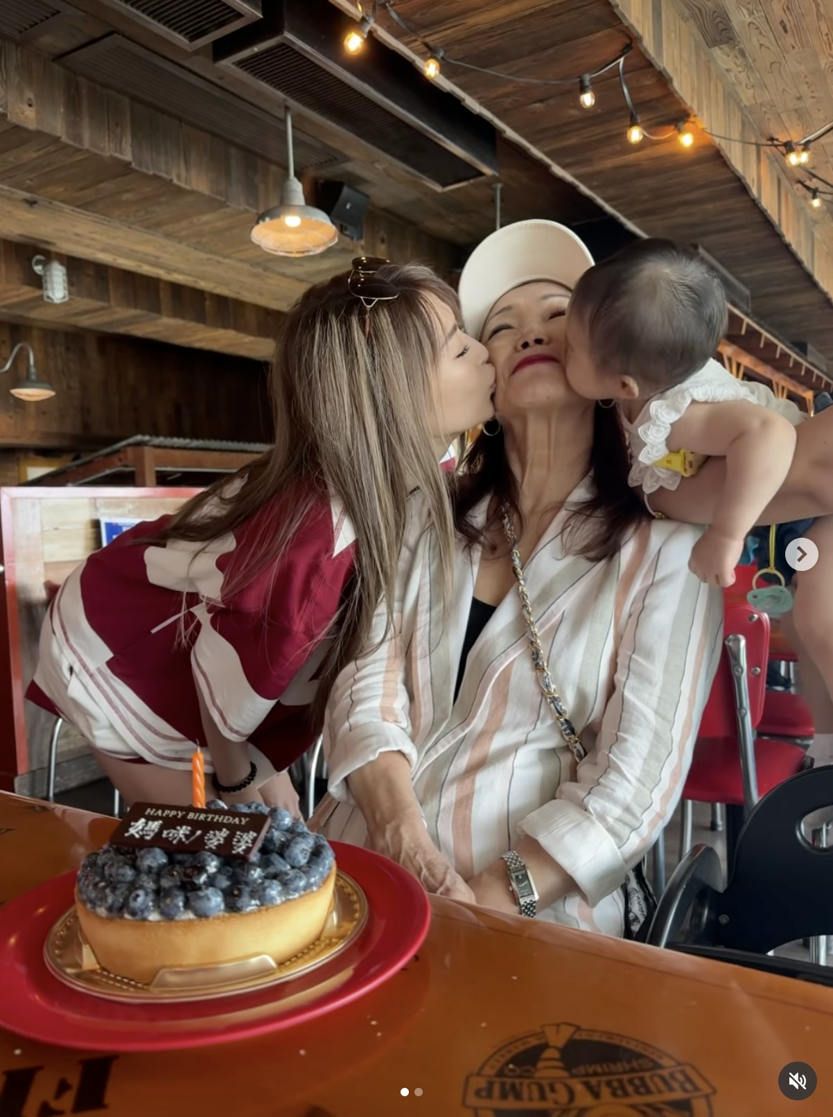 連詩雅(Shiga)與陳家樂去年7月誕下BB女「星星」(Camila),不知不覺女兒已逾一歲,連詩雅不禁笑言女兒愈大愈好玩。近日連詩雅媽媽生日,連詩雅與愛女一家人為婆婆慶祝,年過70的連詩雅媽媽靚到似模特兒,顯示美貌強大基因!