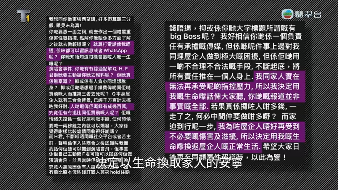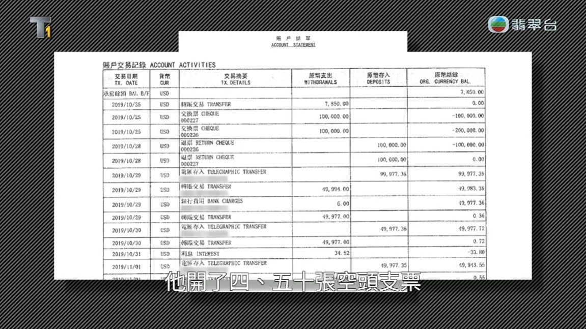 娟姐指Spencer接到美國客人訂單後,會找娟姐聯絡內地廠商生產,Spencer收錢後會把錢直接定轉走到自己的帳戶或是其太太的帳戶內,導致十幾間廠幾萬工人無糧出,涉款達六、七千萬元:「嗰陣時都有起碼六七千萬,用咗二萬幾蚊去銀行拎晒啲statement嚟睇,嗰啲錢美國一寄過嚟,佢就即刻喺公司攞咗啲錢轉去佢太太戶口。」娟姐還要發現Spencer並不是第一次行騙:「佢仲有好多好多案㗎,我哋都知道佢咁樣周圍行騙,但我哋苦無證據之嘛。佢做所有都係喺商會埋手,點解佢可以活到今日呢,同埋佢揸Benz又剩。」娟姐更用蚯蚓來形容他。