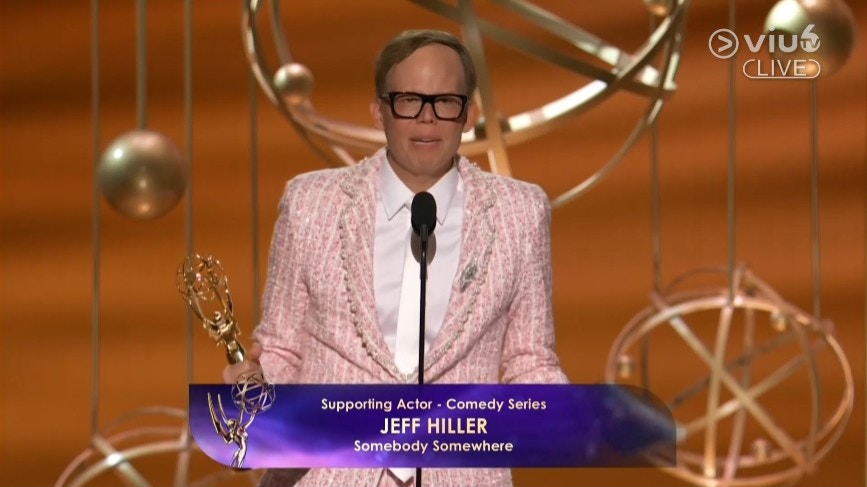 Jeff Hiller憑劇集《Somebody Somewhere》奪得艾美獎「喜劇系列最佳男配角獎」。(直播截圖)