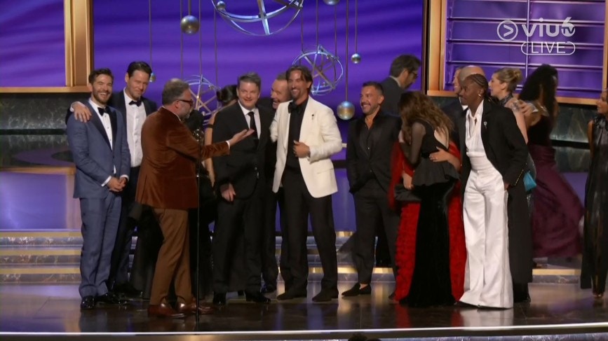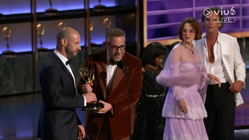 09:41 - 《The Studio》編劇Seth Rogen、Evan Goldberg、Peter Huyck、Alex Gregory及Frida Perez共同奪得「喜劇系列最佳編劇獎」。