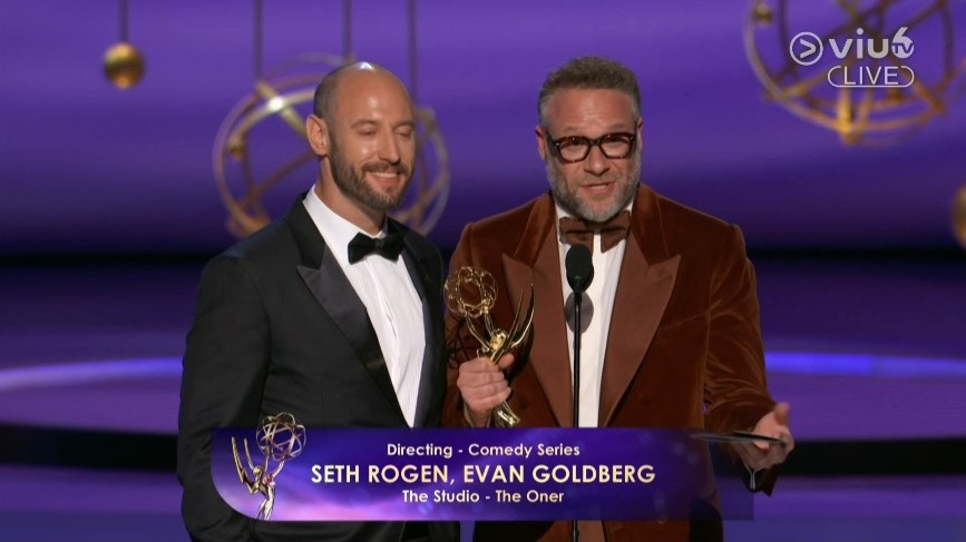 09:02 - Seth Rogen與Evan Goldberg憑《The Studio》第二集〈The Oner〉贏得「喜劇系列最佳導演獎」。