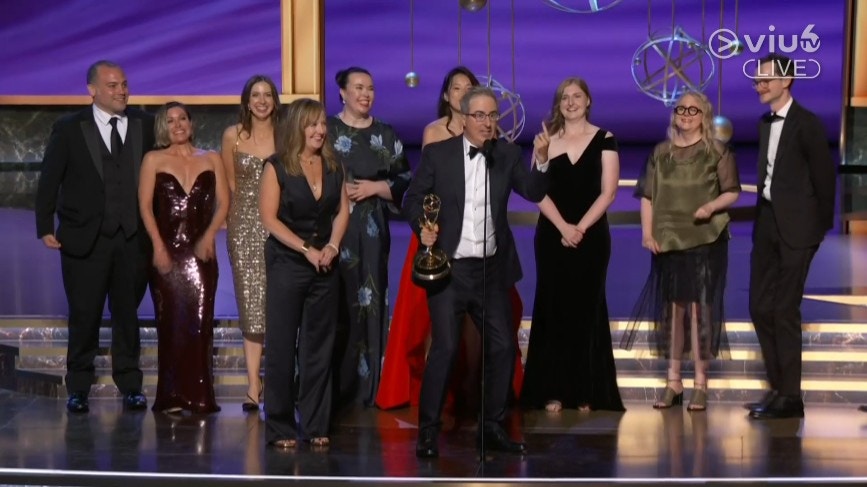 電視節目《Last Week Tonight with John Oliver》奪得艾美獎「最佳劇本式綜藝節目獎」。(直播截圖)