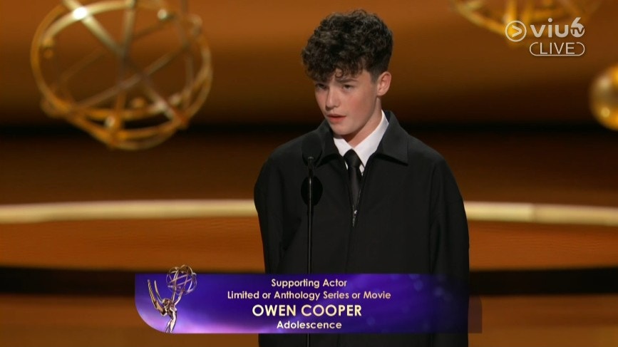 09:27 - Netflix話題劇集《混沌少年時》少年男主角Owen Cooper奪得「迷你劇或選集或電影最佳男配角獎」,發表感言時表示自己三年前只是一個小人物,今天能夠來到美國、艾美獎、甚至得獎,令他感到非常不可思議!