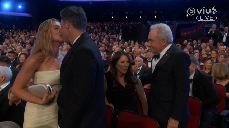 09:47 - 長壽直播綜藝節目的特別周年篇章《SNL50:The Anniversary Special》團隊奪得「最佳綜藝特約直播節目獎」,施嘉莉祖安遜丈夫Colin Jost亦為得獎人之一,在上台前夫妻擁吻。