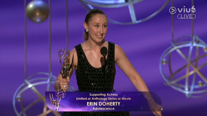 10:00 - 《混沌少年時》女配角Erin Doherty奪得「迷你劇或選集或電影最佳女配角獎」,發表得獎感言時,自嘲指得獎後仍然排在童星Owen Cooper出色演出的陰影下。