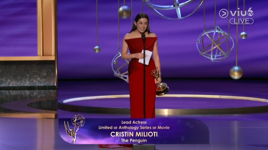 10:03 - DC超級英雄《蝙蝠俠》外傳劇集《企鵝》女主角Cristin Milioti奪得「迷你劇或選集或電影最佳女主角獎」。