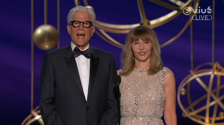 艾美獎特別獎項「Bob Hope人道精神獎」頒發予演員夫妻 Ted Danson及Mary Steenburgen。(直播截圖)