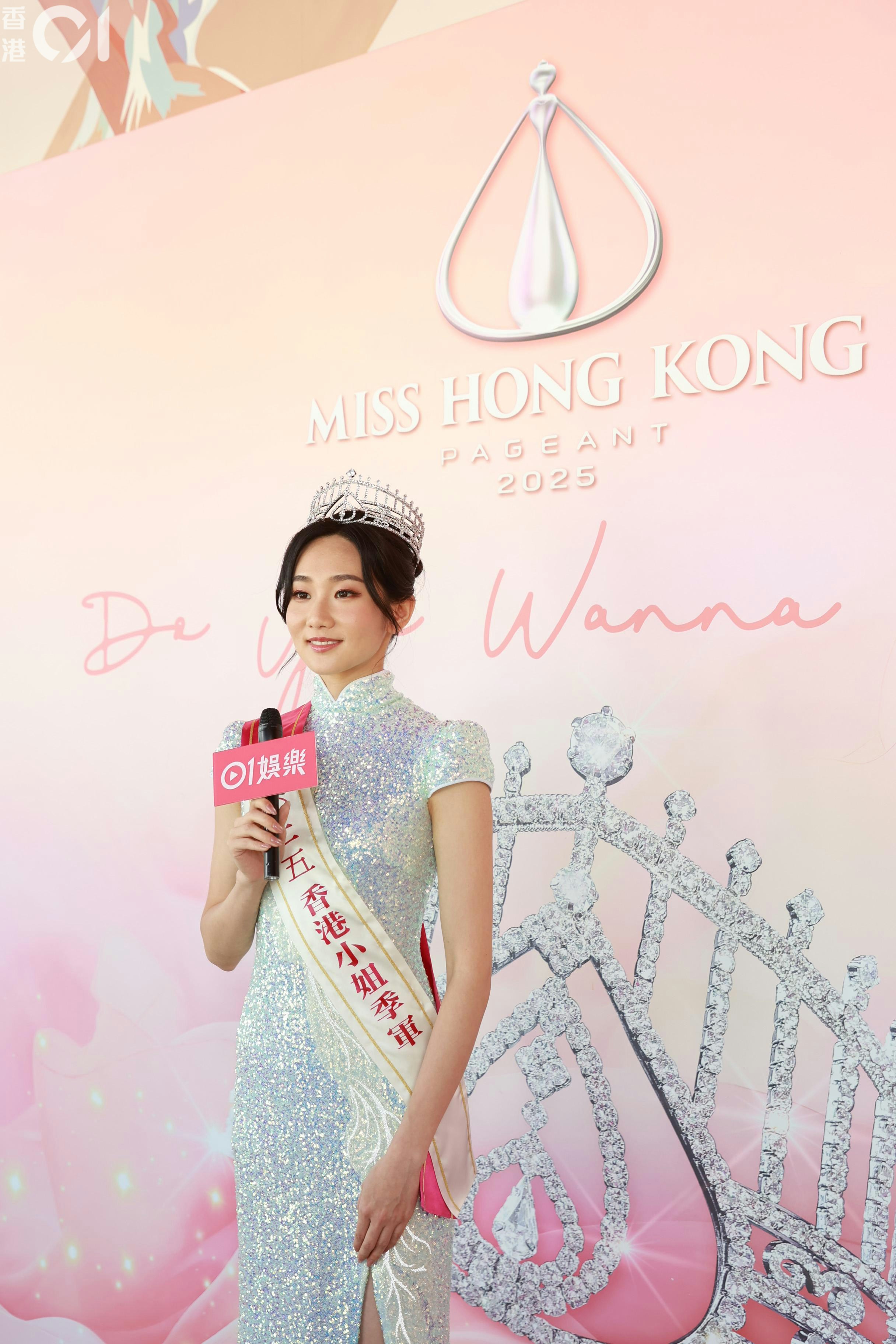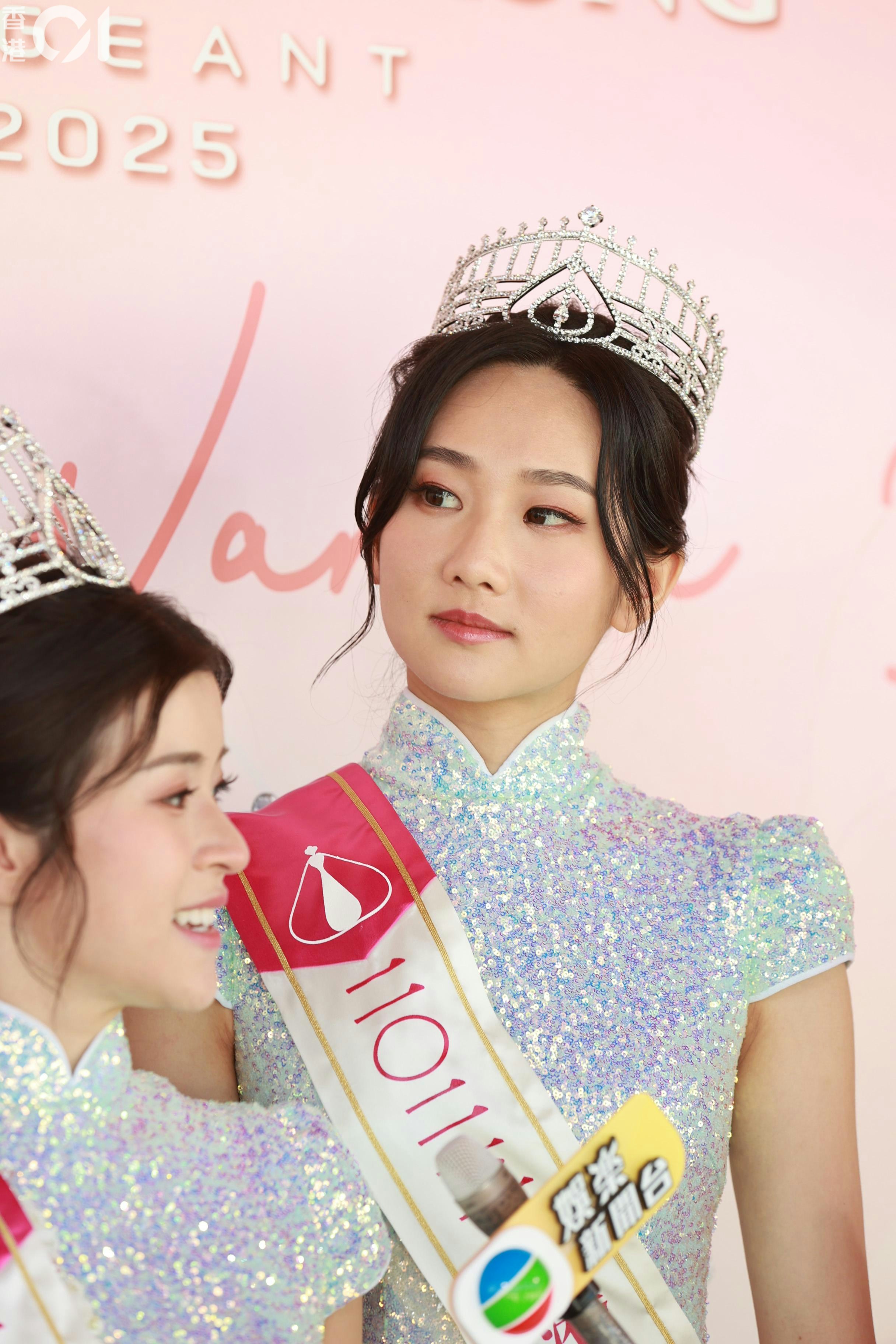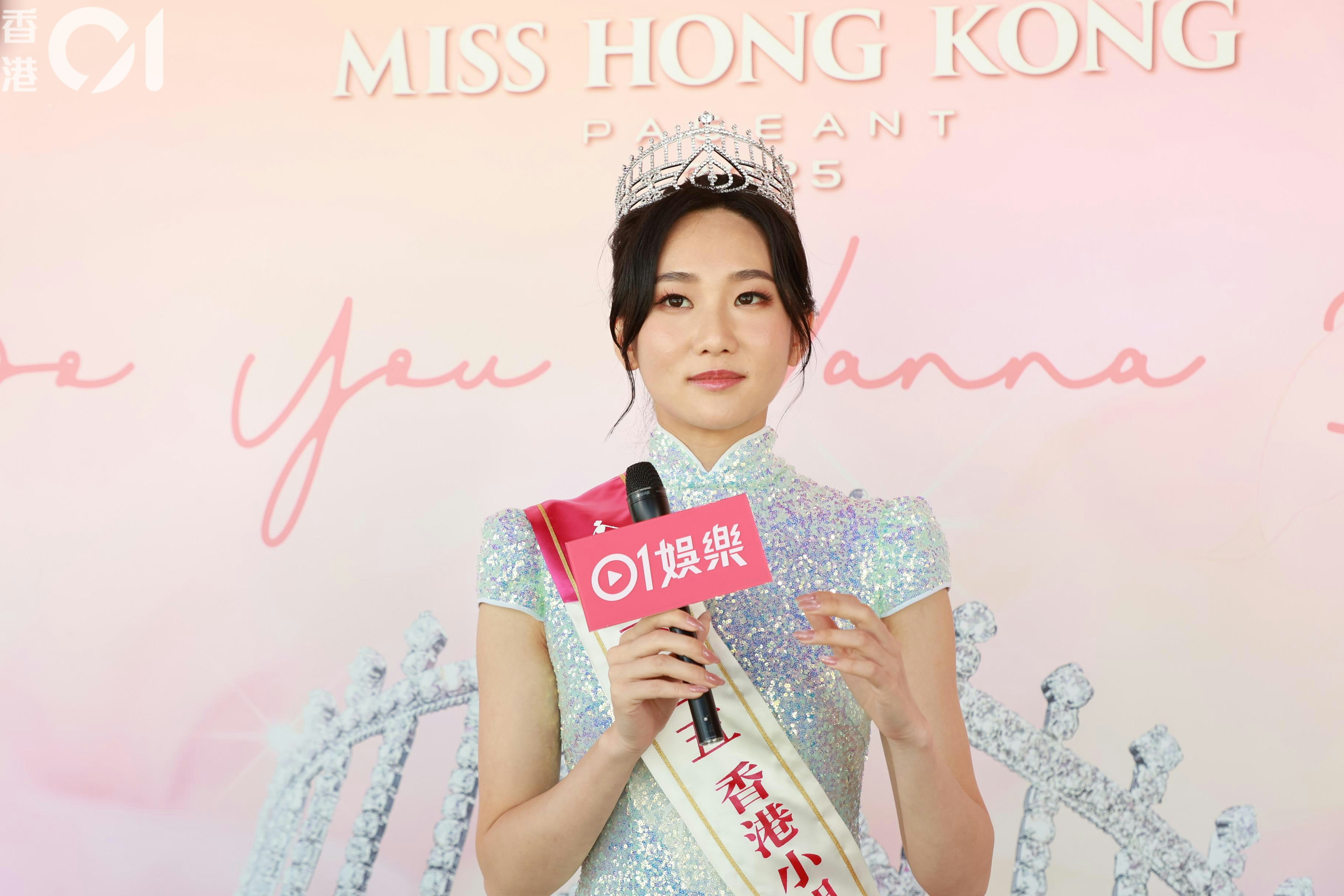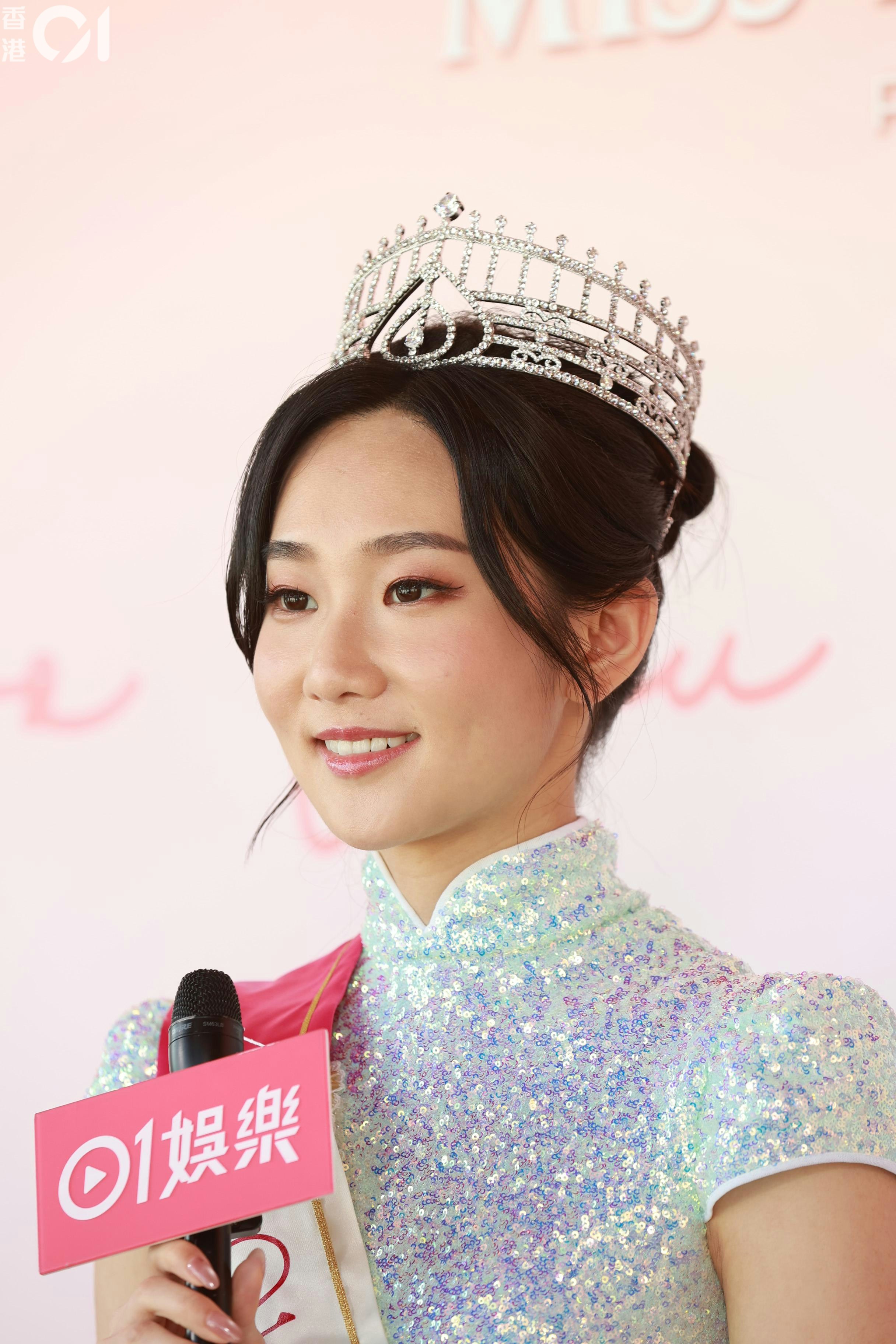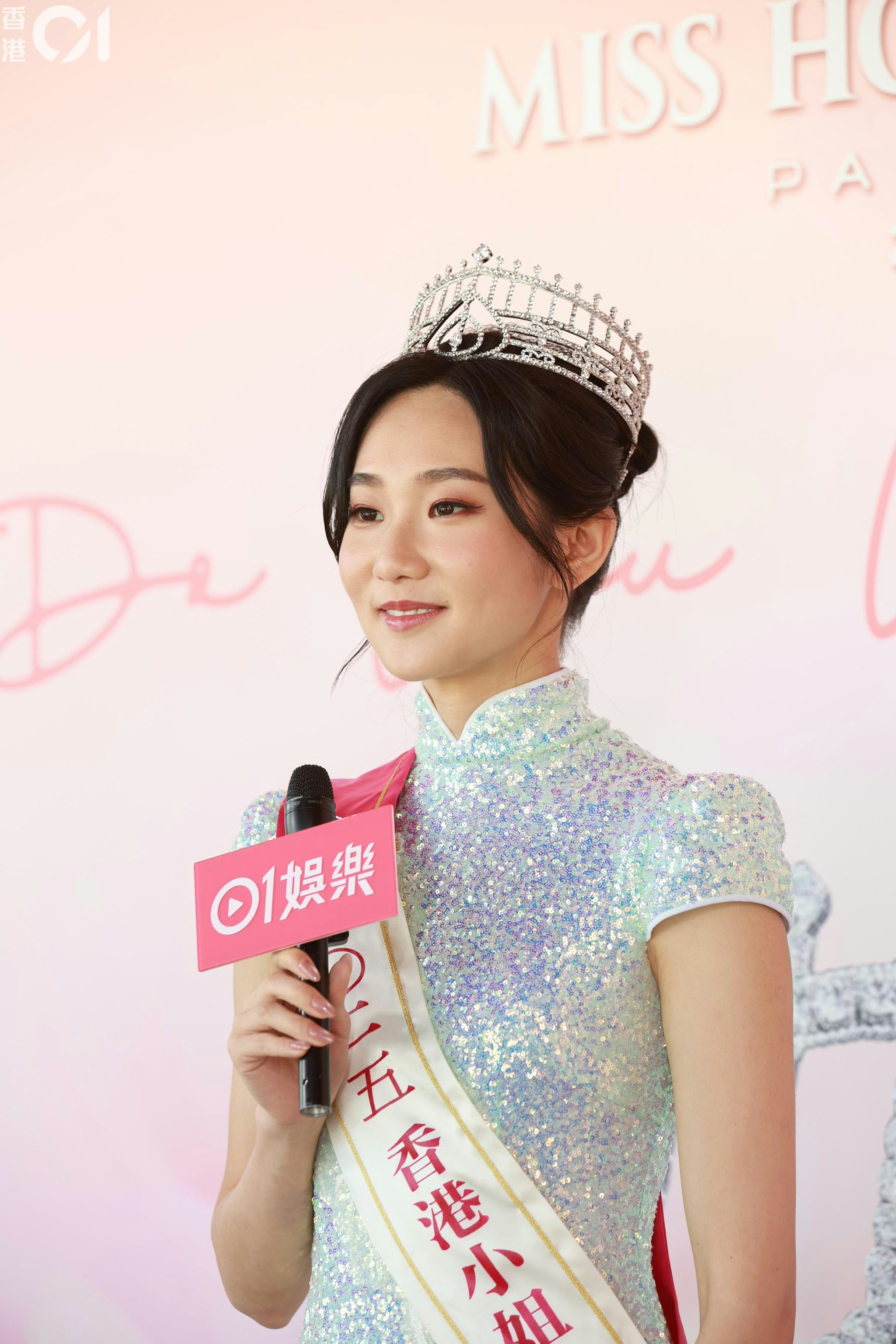 她透露,港姐競選當晚的表出的唱詞是她寫出,因為是用普通話寫的關係,在一些需要押韻的地方,就由朱文慧和施宇琪幫忙。「佢哋幫我諗,點樣去解啲詞,令佢更加好,有意思啲。用普通話寫,佢哋幫我翻譯,因為要押韻,押韻就要揀返啲字。」她表示,由於改詞需時,所以只有2日時間練習。