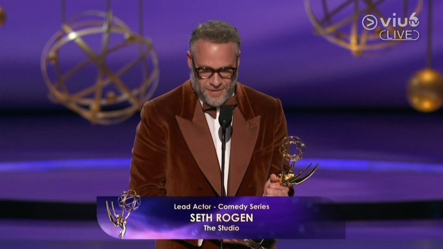 Seth Rogen憑《The Studio》奪得艾美獎「喜劇系列最佳男主角」獎!(直播截圖)