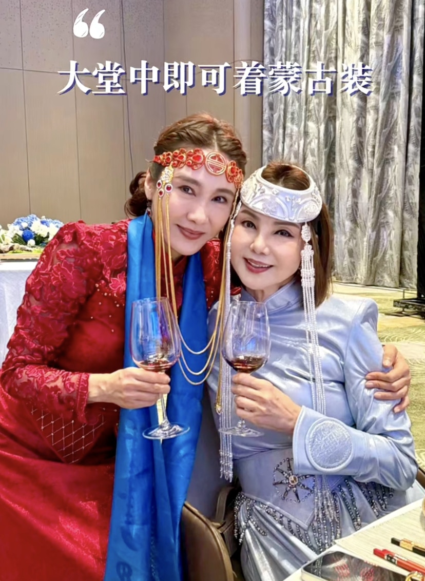 黎姿與謝玲玲穿上蒙古傳統服飾。(小紅書)