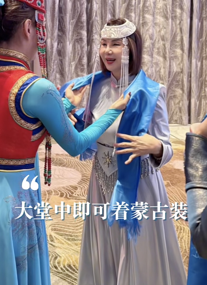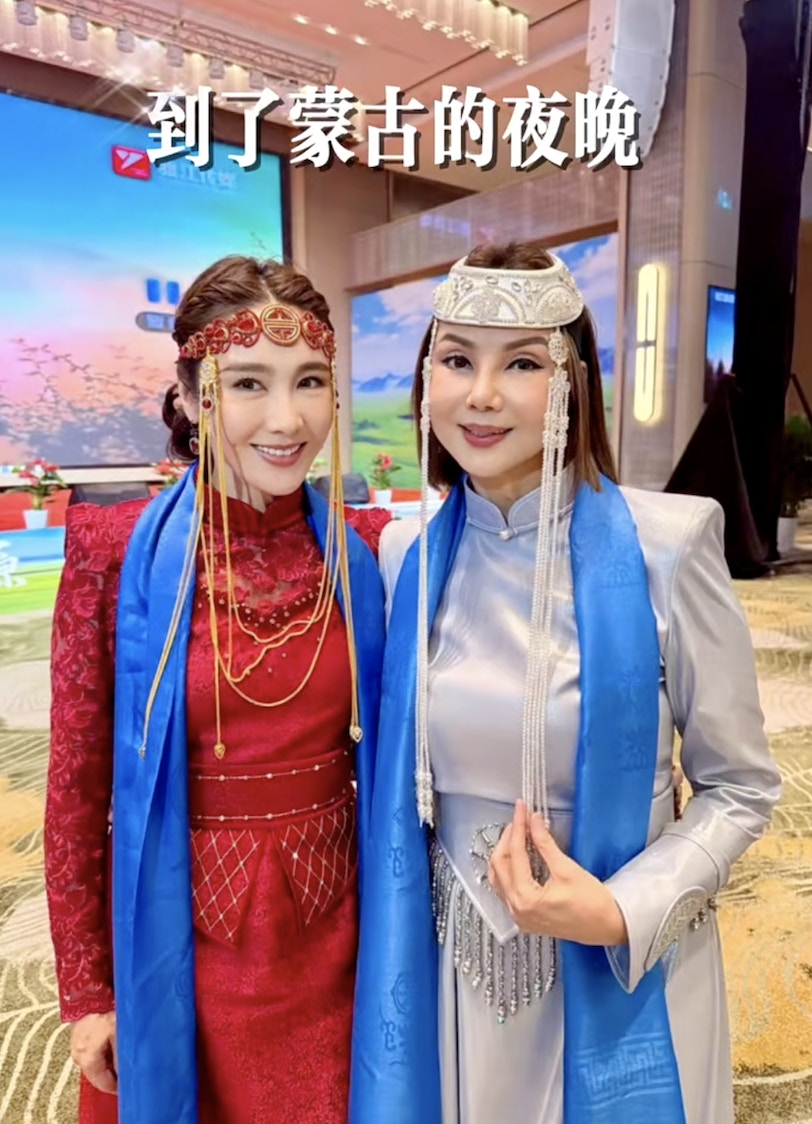 黎姿與謝玲玲穿上蒙古傳統服飾。(小紅書)