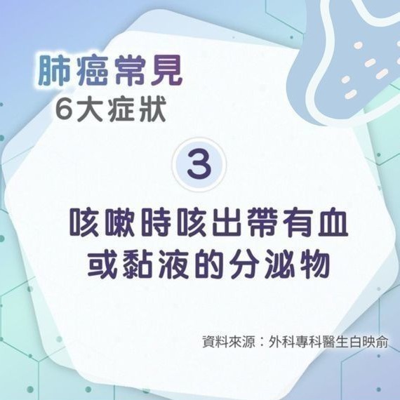 根據癌症基金會資料所示,肺癌為香港十大癌症的「頭號殺手」,致命率遠超於第二名大腸癌,當中男性發病率比較高。香港肺癌患者大多數是吸煙人士,而其他常見風險因素如人口老化、空氣污染和胸腔放射治療等,亦會增加肺癌的風險因素。