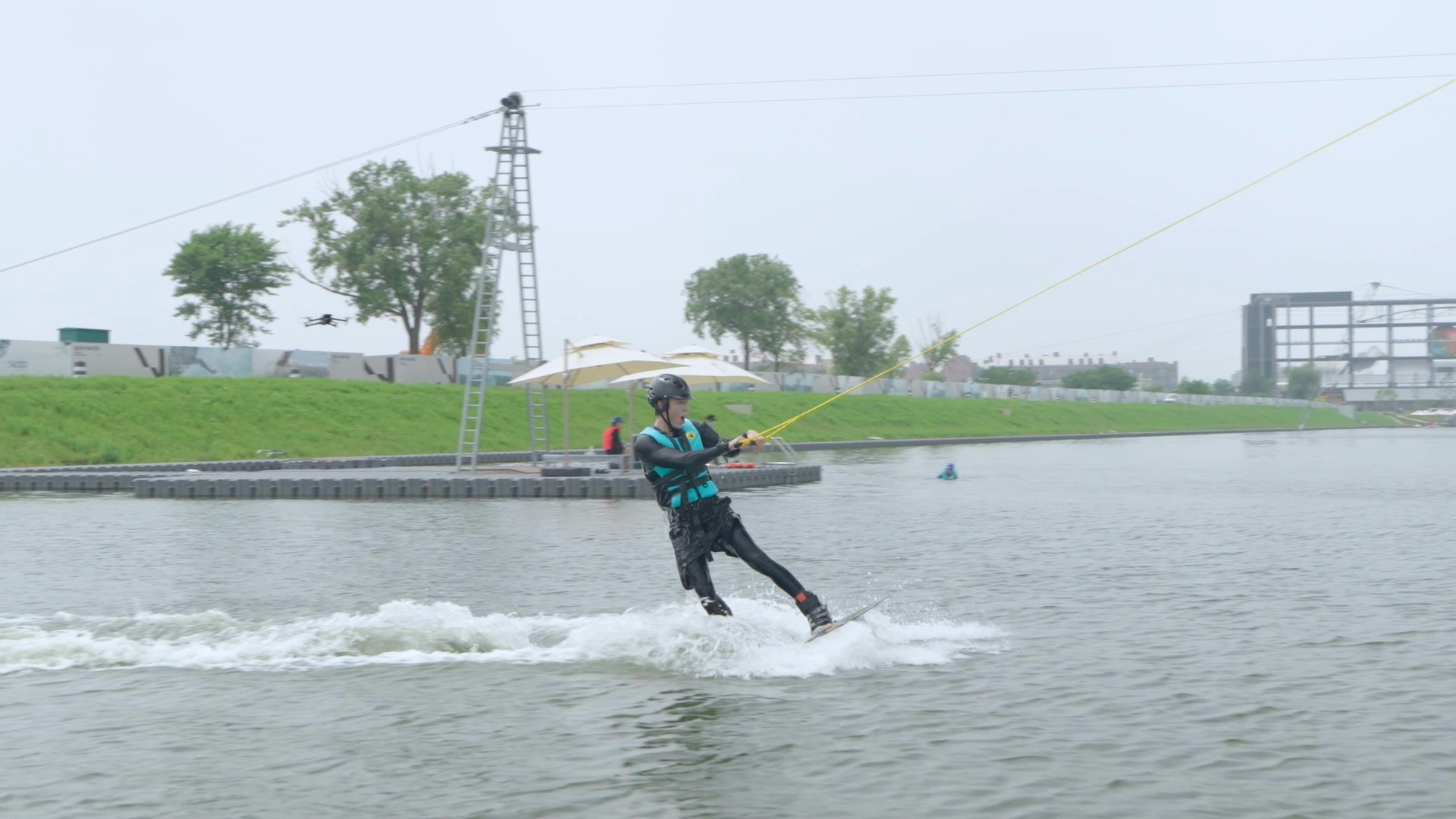 三人挑戰刺激運動—索道滑水。(官方提供)