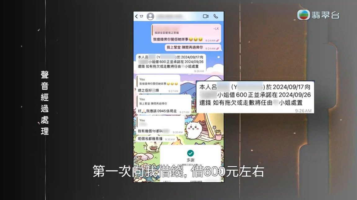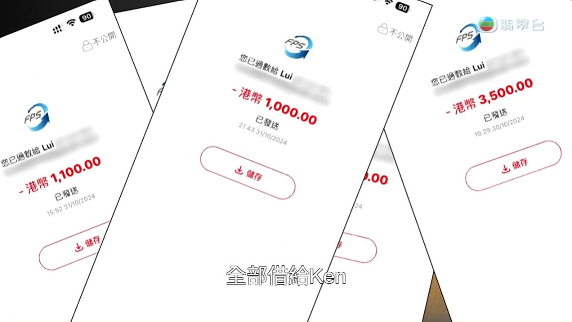 可是,在一起一個月後Ken就慢慢露出真面目,向Elaine表示自己錢包掉了,所以問她借錢,由起初的幾百元,到後期帶Elaine到財務公司借錢,一切都有舖排。Ken藉口媽媽在內地心臟病發要急救,於是向Elaine借錢,更立下借據,Elaine把自己辛苦儲下的7萬多全借了給Ken,但他仍然覺得不夠,最後還向Elaine表示:「佢話佢媽咪過咗身,要做身後事,要做帛金。」而Elaine的媽媽聽到後就覺得很奇怪,因為Ken不停向Elaine借錢。雖然最後Elaine有借錢予Ken,但他繼續表示不夠,及後造就了Elaine向財務公司借了10萬元:「去財務公司第一次係借咗10萬元先嘅,佢就叫我再去其他地方借,嗰度總共50幾萬。」