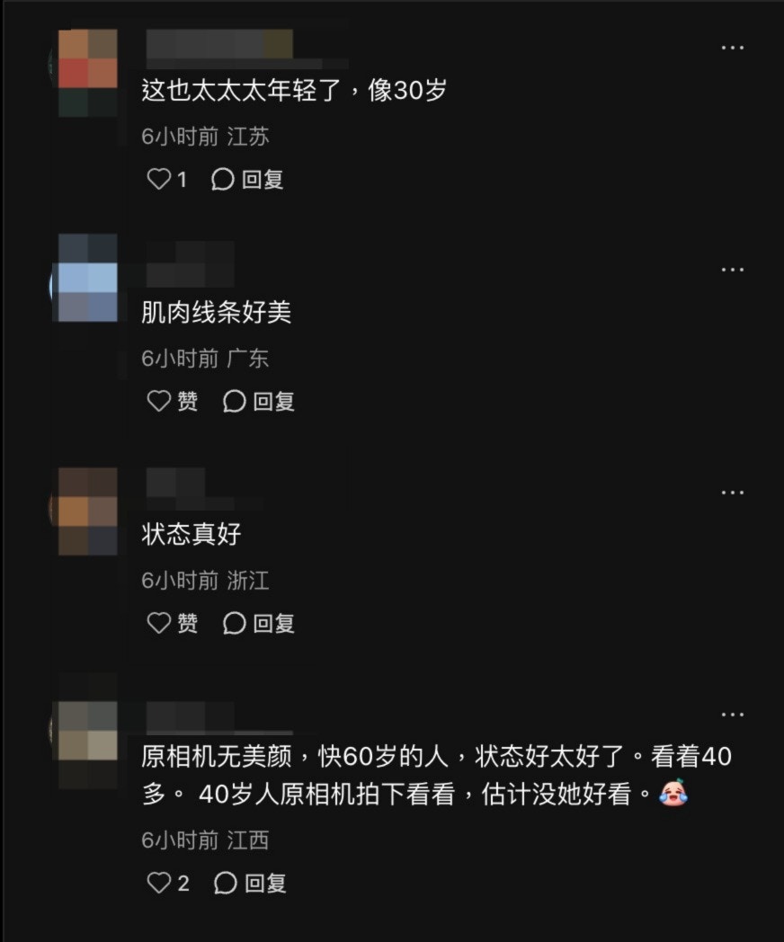 更吸睛的是,李若彤穿上一件貼身運動背心,大方露出香肩與結實的川字腹肌,完美突顯其多年來堅持健身、生活自律得來的fit爆身材線條,狀態好到令人震驚。網民紛紛留言:「這臉這髮量這身材,望塵莫及」、「皮膚怎麼做到這麼緊緻呀?太羨慕了」、「像30左右,我35沒她年輕」,大讚李若彤女神老了還是女神:「她現在應該是奔六天花板的存在」、「原來小龍女真的不會老」。
