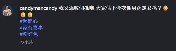 相片可見,文雪兒笑到四萬咁口靠近育嬰箱與BB合照,而BB頭髮濃密,熟睡中好可愛。《香港01》昨日(31日)聯絡上文雪兒,原來是細女Jennifer三年抱三,誕下第三胎,並揭露BB性別,她以短訊回覆:「是女孩子,我剛從日本拍攝回來,電影是謝寧女兒做導演。」